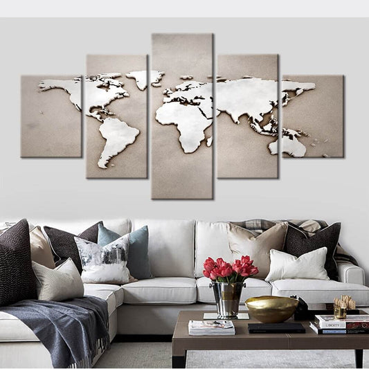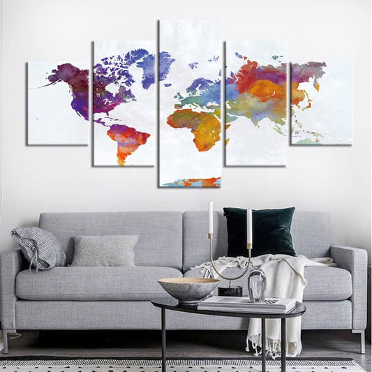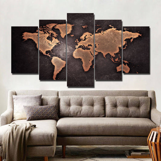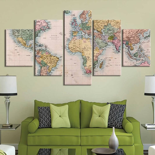 Tableau Carte Du Monde 5 Panneaux