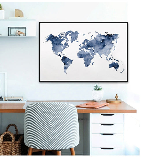 Tableau Carte Du Monde Bleu