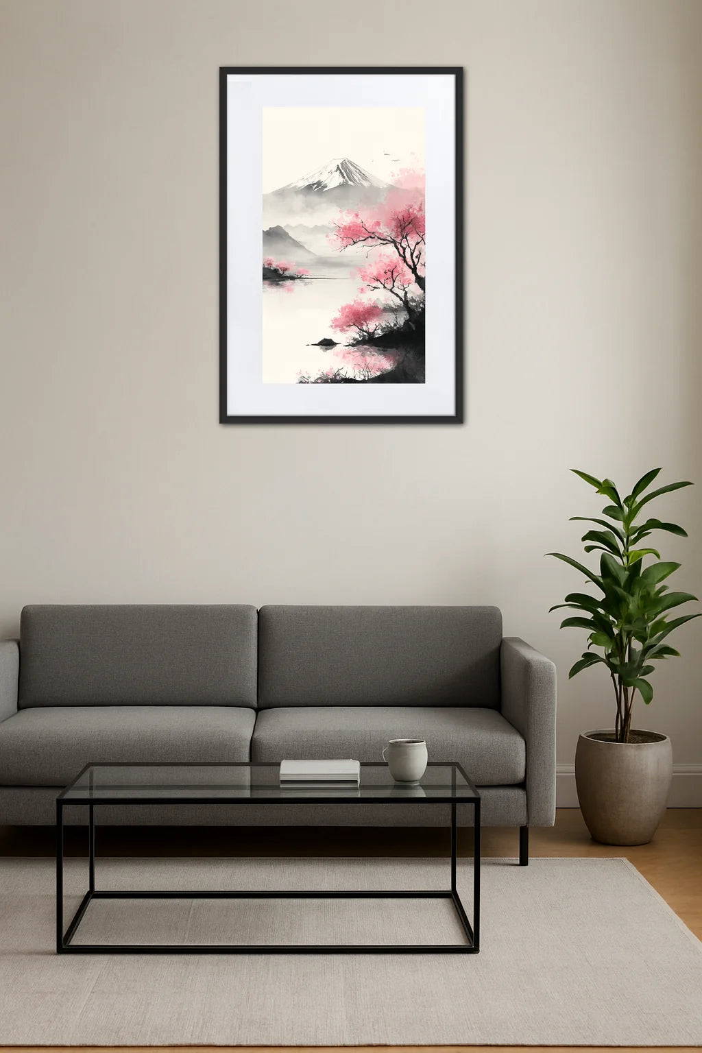 - Une profondeur visuelle envoûtante : Le jeu subtil entre le sommet enneigé et les branches en fleurs crée une perspective qui invite le regard à s’égarer. Cette immersion visuelle éveille un sentiment de calme et d’émerveillement, comme une pause précieuse dans le tumulte du quotidien.