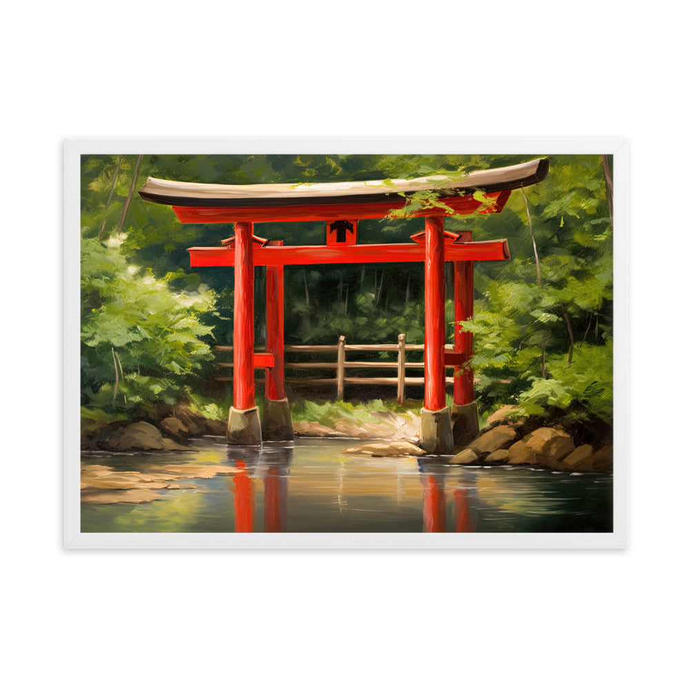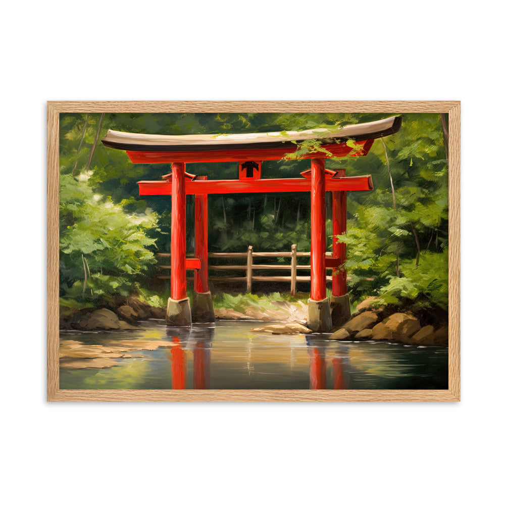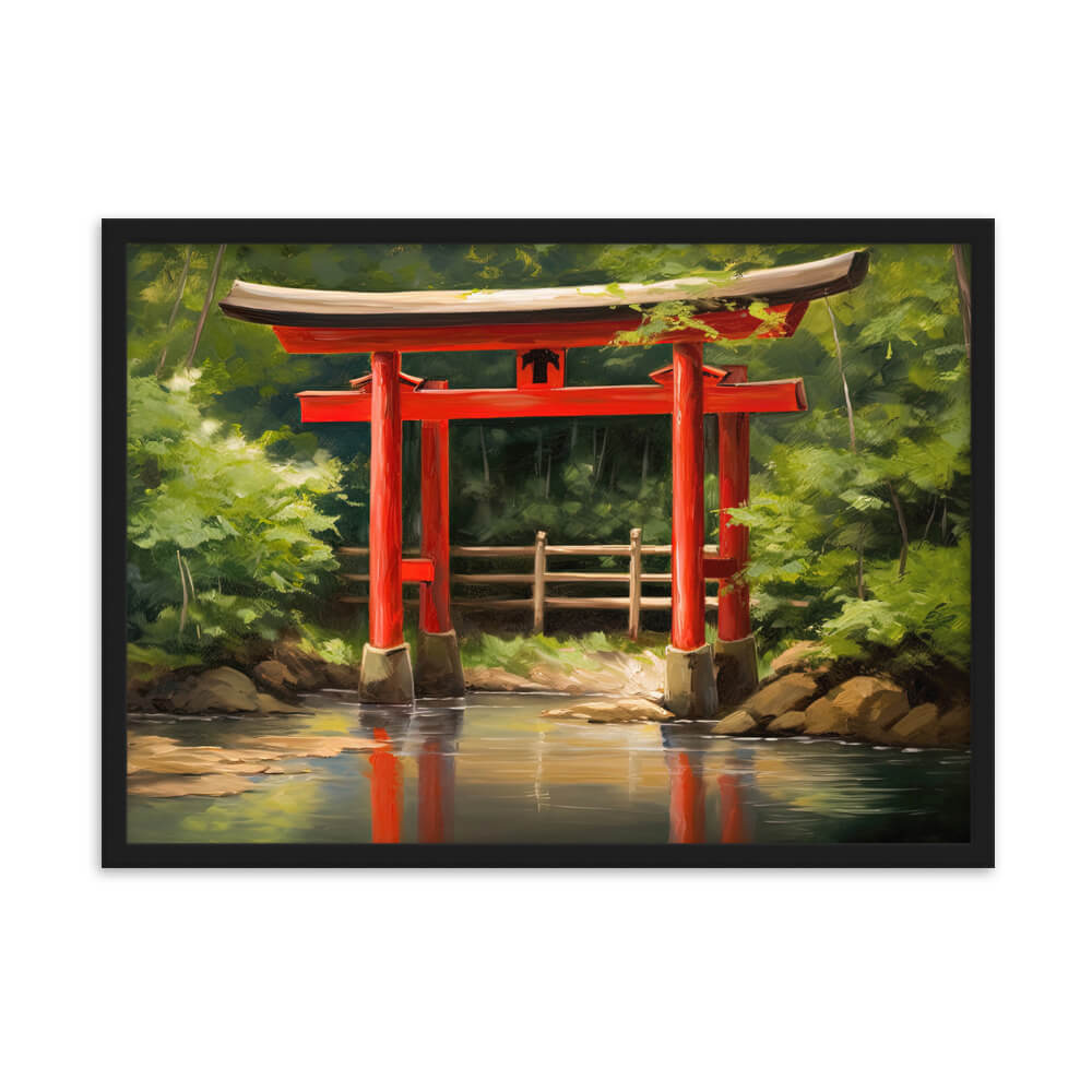 Évoquant la mystique du Japon, ce tableau met en valeur un torii, un portail sacré japonais, dans un paysage enchanteur. Les couleurs vibrantes et les détails soignés captivent le regard, ajoutant une touche de spiritualité et de raffinement à votre espace.