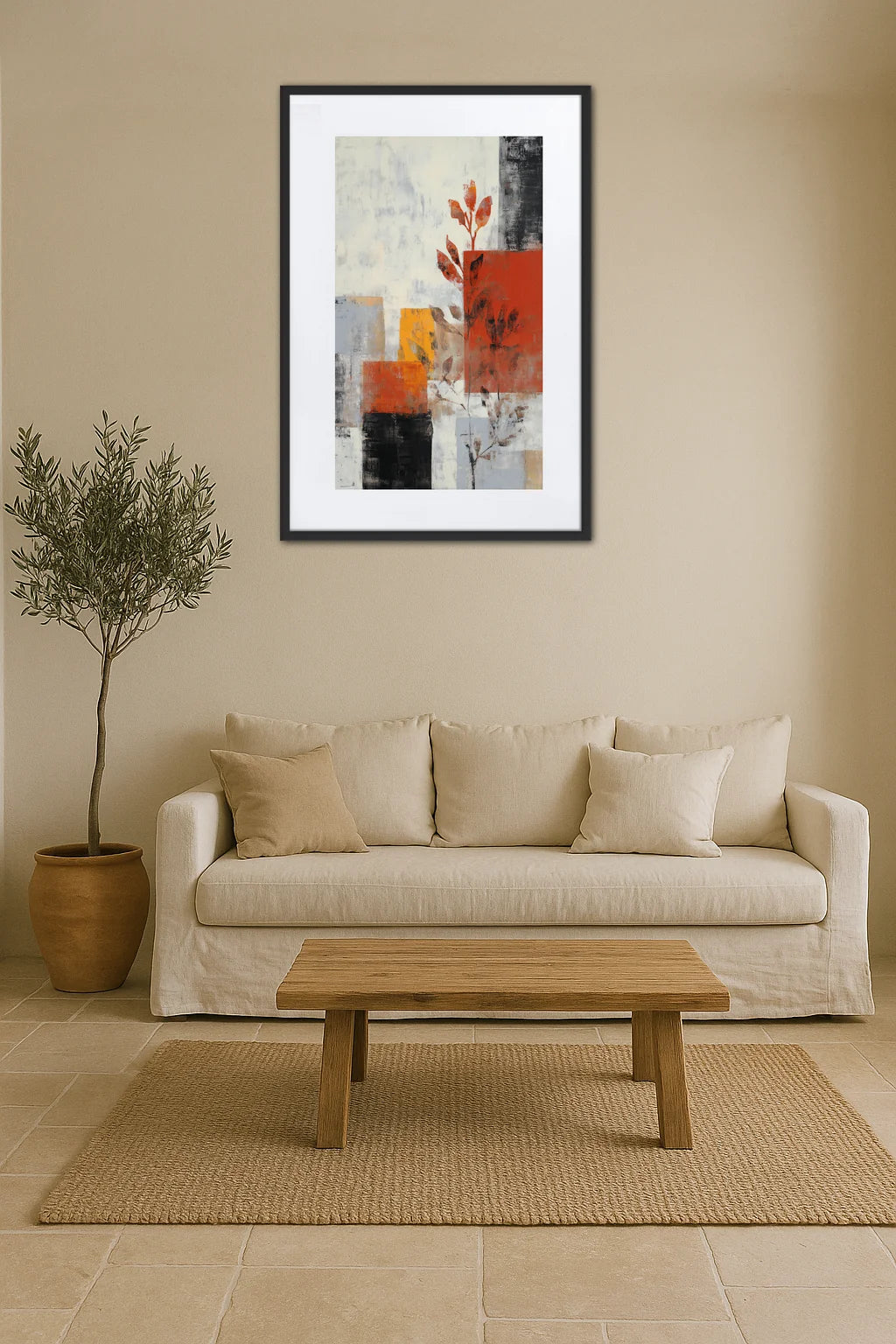 Ce Tableau Abstrait Automne s’inscrit dans une quête de capturer l’essence même de cette saison où la nature se métamorphose en un spectacle de contrastes et de renaissances silencieuses. Ici, les formes géométriques s’entrelacent avec des silhouettes végétales, comme une invitation à redécouvrir la subtilité des paysages automnaux à travers un prisme inédit. Le rouge profond et l’ocre vibrant dialoguent avec des nuances plus douces qui évoquent la lumière tamisée d’un après-midi d’automne, tandis que les touches plus sombres apportent une profondeur mystérieuse, rappelant la terre fertile et les ombres des sous-bois. Cette œuvre ne se contente pas de représenter la saison, elle en traduit l’atmosphère oscillant entre le calme intérieur et une énergie contenue. Elle invite à ressentir le souffle du vent sur les feuilles, la chaleur persistante malgré la fraîcheur naissante, et la beauté éphémère d’un instant suspendu. Par son abstraction, elle laisse place à l’imaginaire, permettant à chacun d’y projeter ses propres souvenirs, ses émotions et sa poésie intérieure, faisant de ce tableau un compagnon silencieux et précieux pour les moments de contemplation.