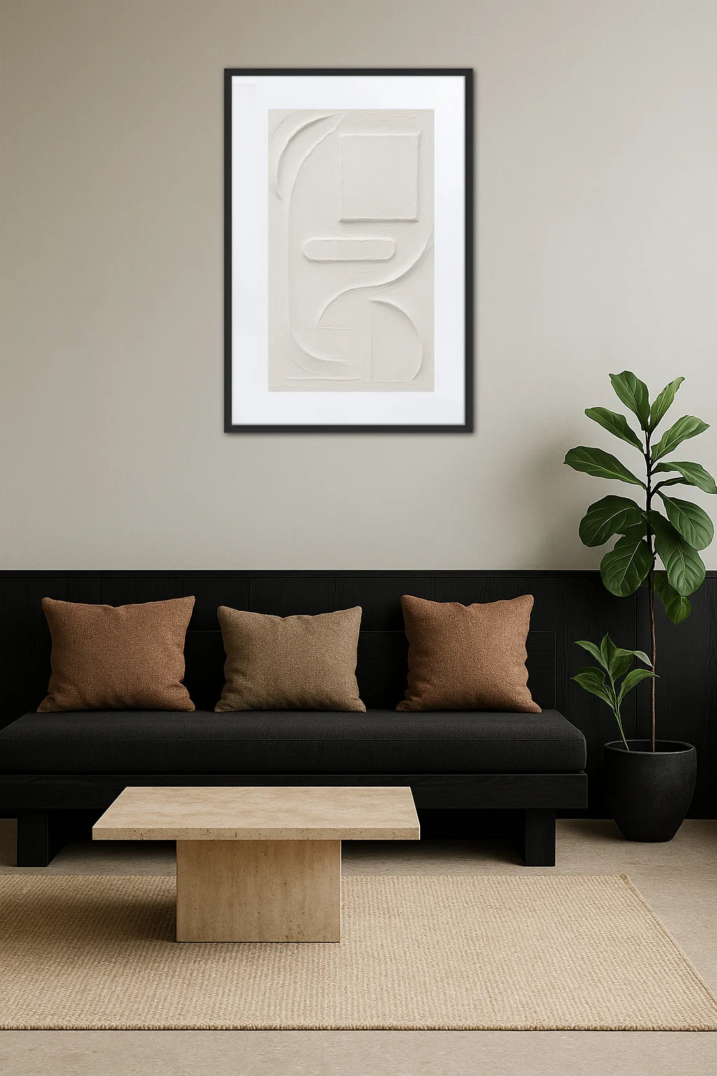 Au-delà de ses formes épurées, ce tableau abstrait blanc déploie une véritable symphonie de matière et de volumes, où chaque courbe et chaque relief dialoguent dans un équilibre subtil. L'œuvre joue avec la lumière naturelle, révélant à chaque instant une nouvelle nuance, un nouveau souffle qui invite à la contemplation. Cette pièce évoque une quête d’harmonie silencieuse, un monde intérieur où les formes se détachent avec douceur sur un fond immaculé, presque immuable. Elle fait écho aux mouvements artistiques qui ont célébré la pureté des formes et la puissance de la simplicité, tout en transcendant l’ordinaire par sa texture et sa profondeur. L’abstraction y devient langage, une invitation à ressentir plus qu’à comprendre, à laisser l’esprit vagabonder entre les surfaces et les creux. Une œuvre qui incite à la rêverie, à la méditation, et qui s’inscrit parfaitement dans une décoration raffinée où l’art devient une respiration, un souffle apaisant au cœur de l’espace qu’elle habite.