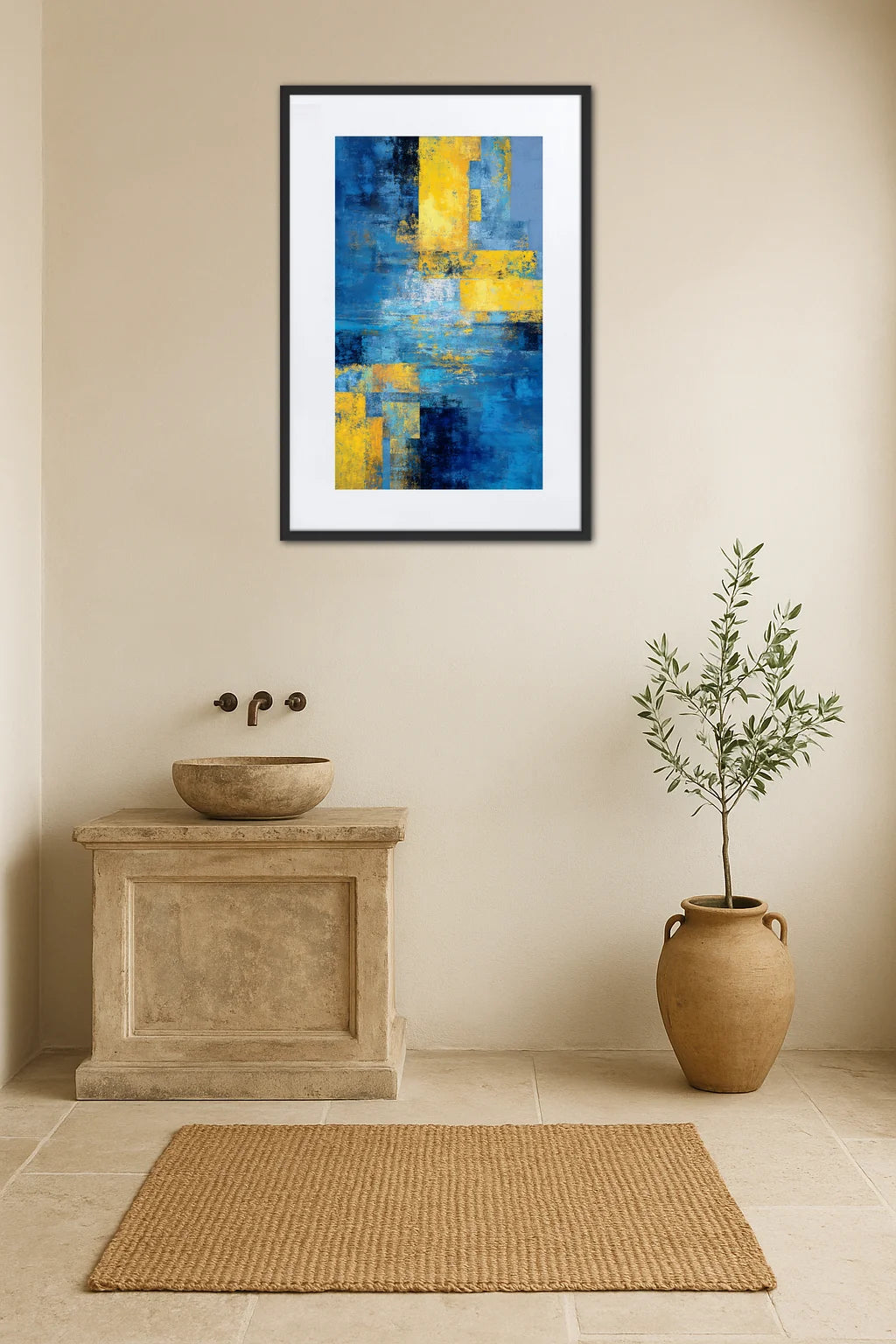 L'histoire derrière ce Tableau Abstrait Bleu Et Jaune - Résonances lumineuses et profondeur émotionnelle