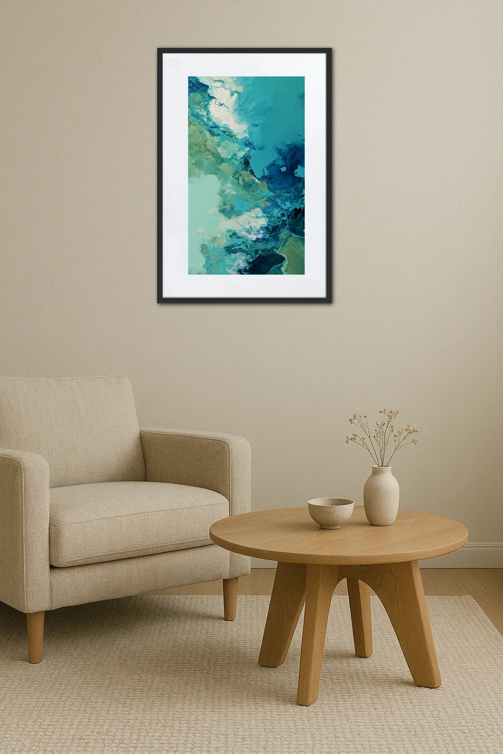L'histoire derrière ce Tableau Abstrait Bleu Vert - Harmonie liquide et souffle naturel