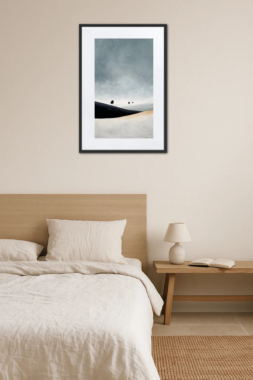 - Une simplicité évocatrice : Les formes épurées suggèrent des paysages intérieurs aux contours flous, stimulant l’imagination. Ce minimalisme visuel génère un sentiment de tranquillité et d’introspection profonde, éveillant une émotion douce et nuancée.