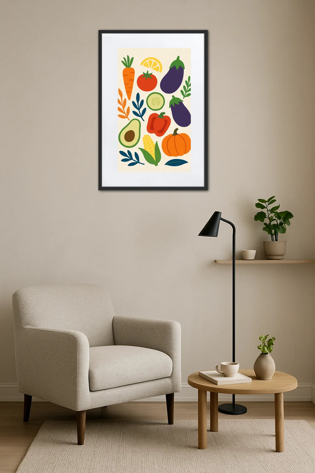 - Des formes organiques et sculpturales : Chaque légume est représenté avec une simplicité raffinée qui invite le regard à voyager. Cette douceur des contours crée une atmosphère apaisante tout en stimulant la curiosité et l’émerveillement.