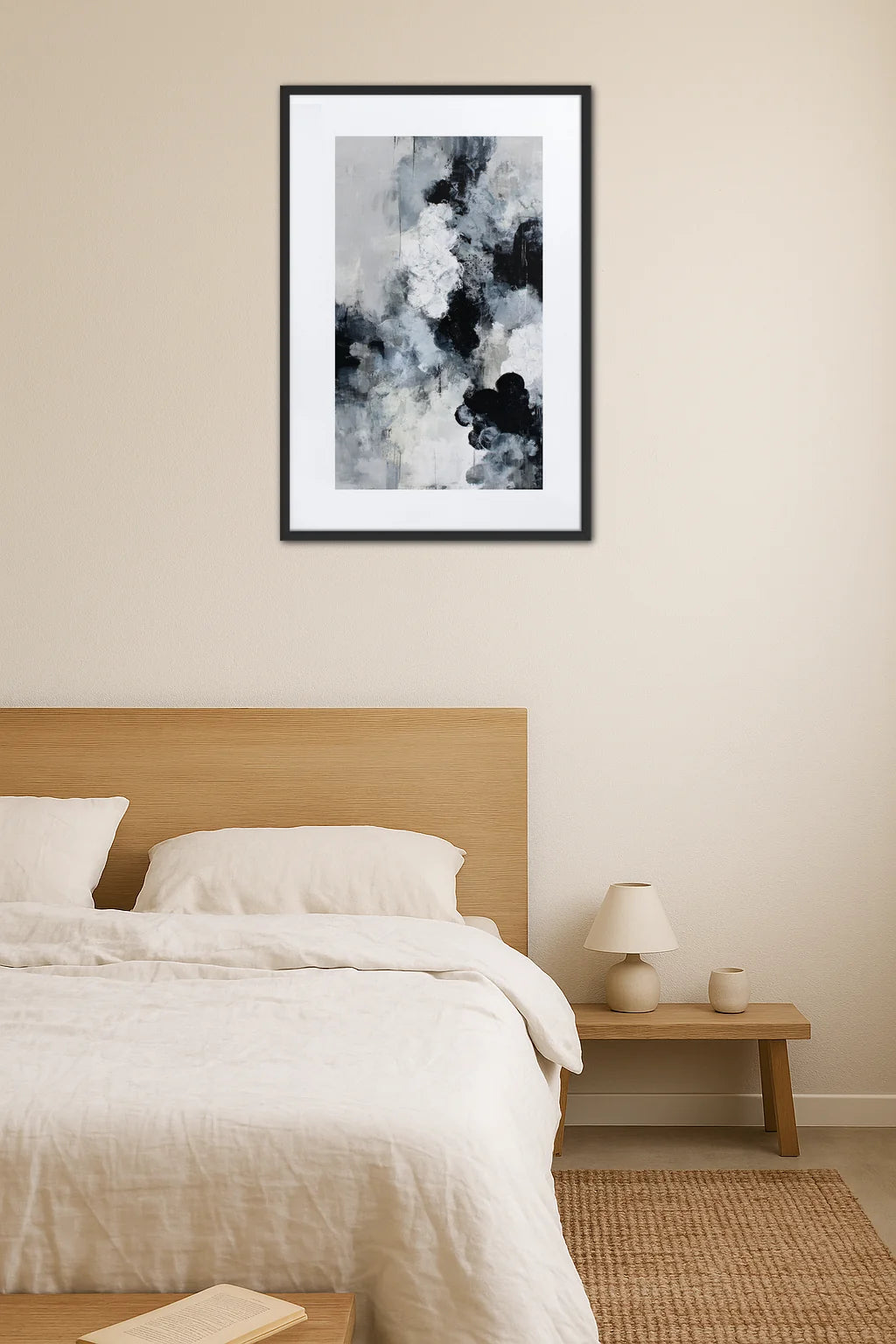 - Ambiance apaisante : Malgré la force des noirs, l’ensemble s’équilibre par des nuances grises qui adoucissent le regard et apportent une atmosphère sereine. Cette harmonie visuelle se traduit en une sensation de calme profond, comme un souffle apaisant qui invite à la méditation et au ressourcement intérieur.