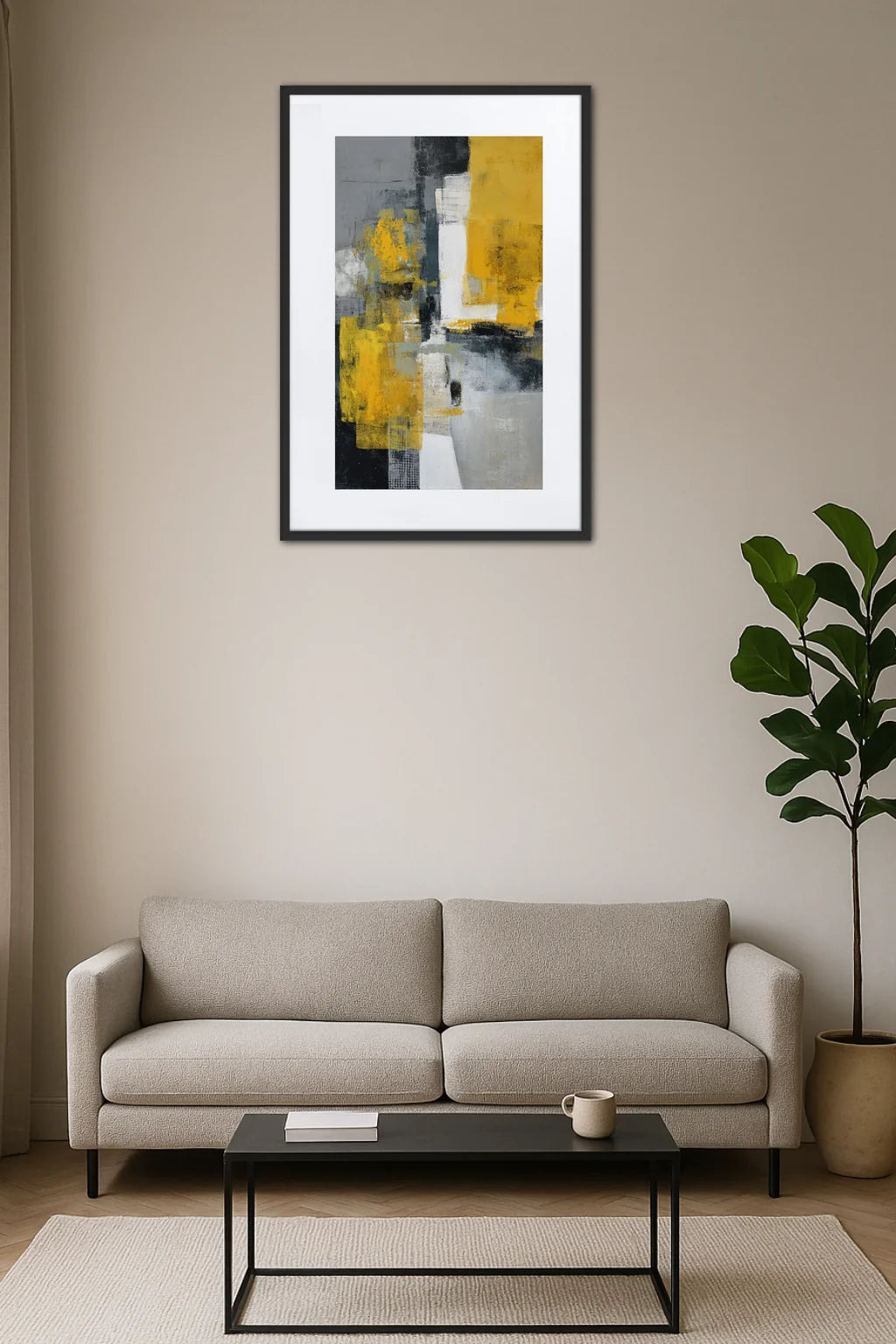 Tableau Abstrait Jaune Et Gris