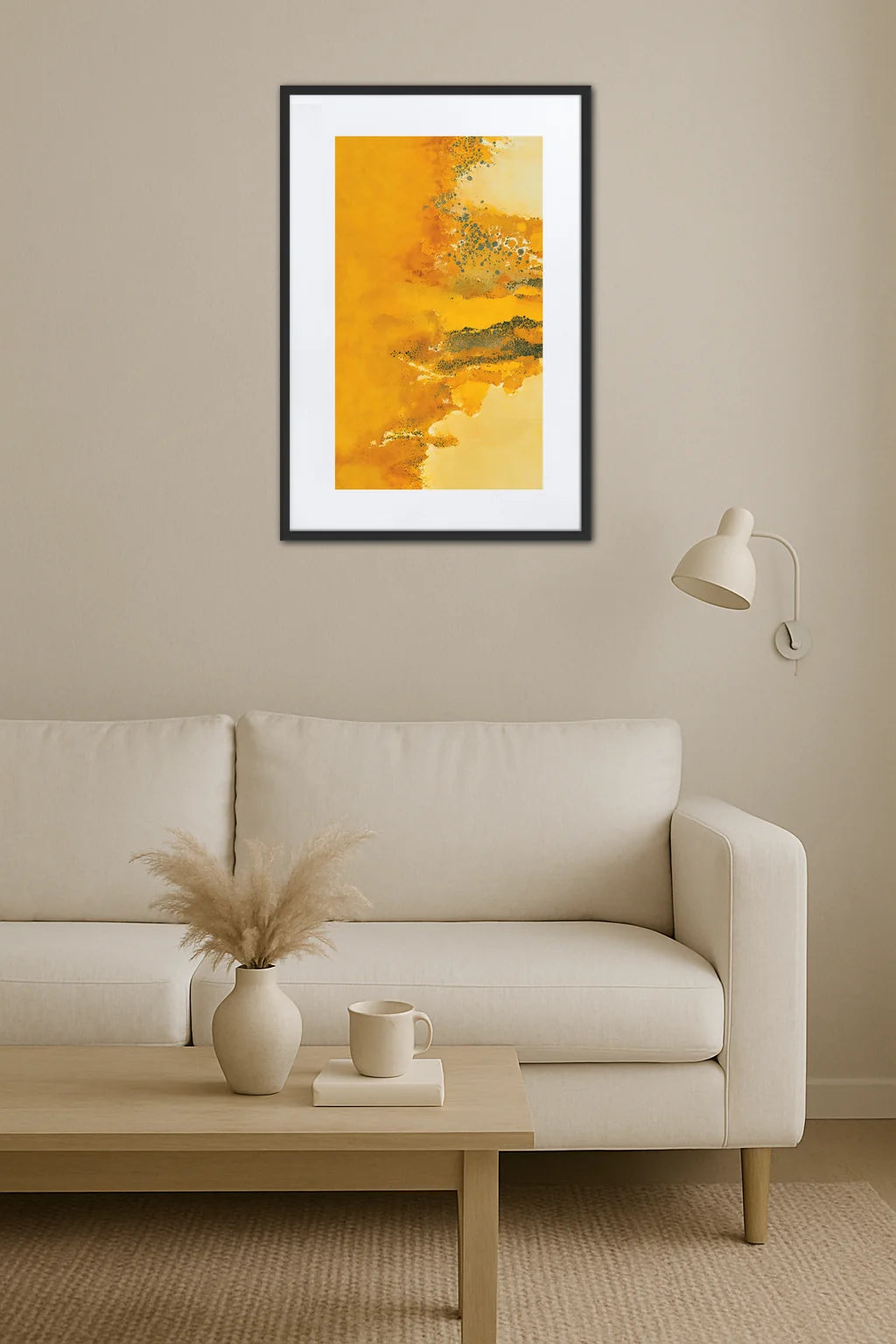 L'histoire derrière ce Tableau Abstrait Jaune Moutarde - Éclats de lumière et vibrations intérieures