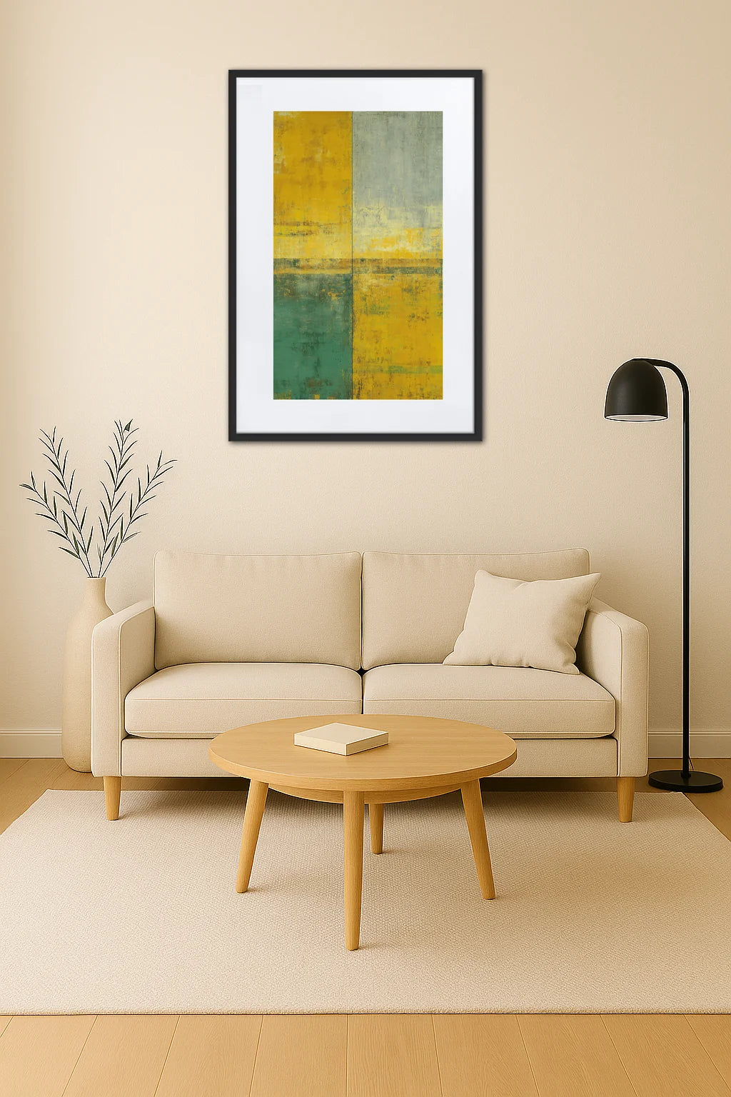 L'histoire derrière ce Tableau Abstrait Jaune Vert - exploration lumineuse et équilibre des formes