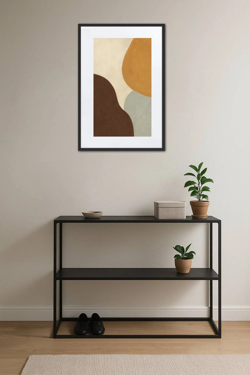 Cette œuvre incarne une quête d’équilibre entre la simplicité des formes et la profondeur des émotions. Inspirée par l’essence même du minimalisme, elle invite à contempler l’espace où se mêlent douceur et présence, comme un souffle suspendu dans le temps. Les courbes organiques évoquent des paysages intérieurs, des souvenirs effleurés par la lumière, tandis que les aplats de couleurs naturelles rappellent la matière brute et la chaleur du monde. Chaque forme, tout en retenue, dialogue avec l’autre, créant un espace de respiration où le regard peut vagabonder librement. C’est un hommage à la beauté de l’épure, à la poésie des silences visuels, qui transcende l’image pour toucher l’âme. Dans cette composition, le classique côtoie la modernité, et le familier se transforme en une expérience sensible, presque méditative. L’œuvre ne se contente pas d’être un objet décoratif, elle devient un compagnon discret, une présence apaisante qui enrichit l’atmosphère d’une pièce, invitant à une pause, à un instant d’introspection et de calme.