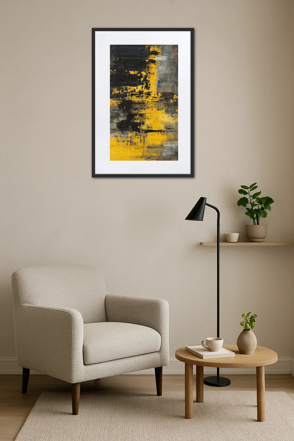 L'histoire derrière ce Tableau Abstrait Noir Et Jaune - fusion d’énergies et contrastes audacieux