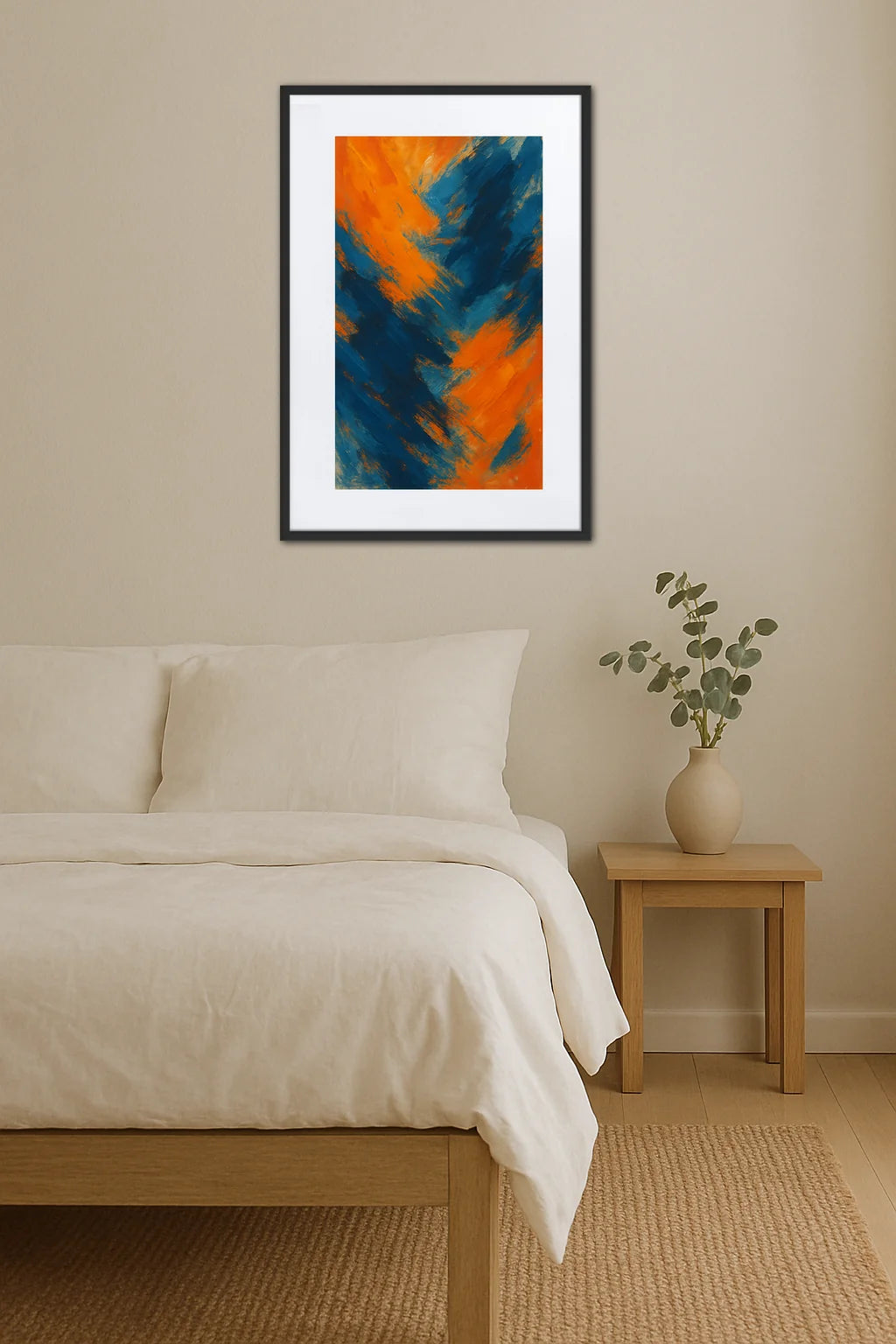 L'histoire derrière ce Tableau Abstrait Orange Et Bleu - fusion dynamique et contraste vibrant