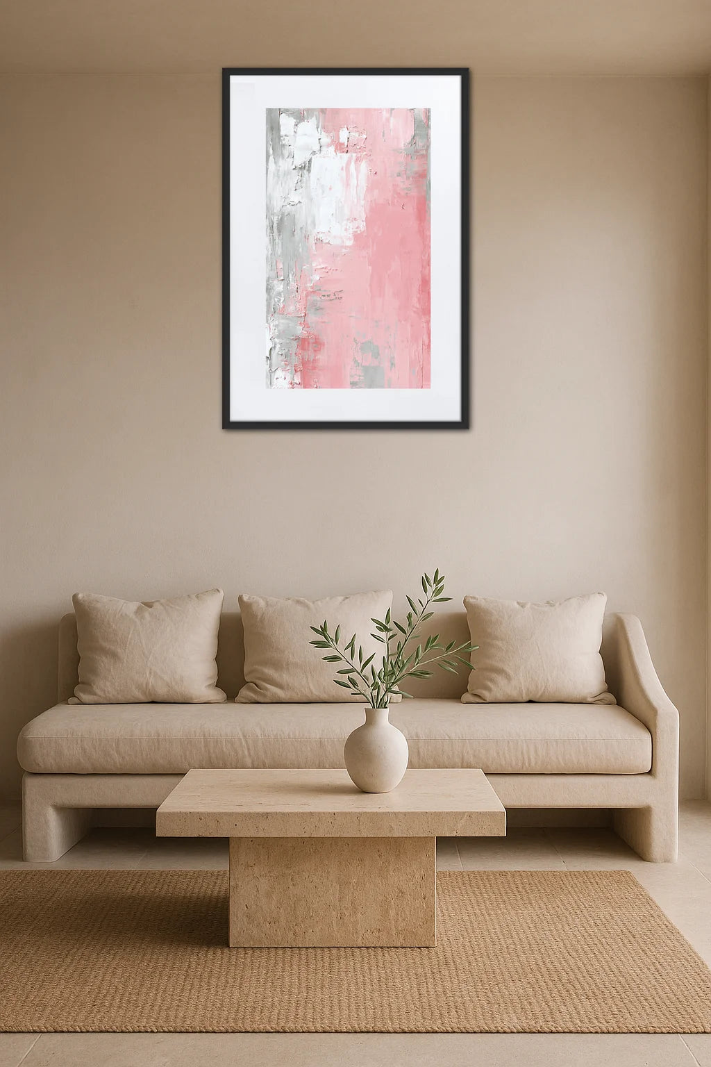 L'histoire derrière ce Tableau Abstrait Rose Et Gris - Harmonie des émotions et textures subtiles