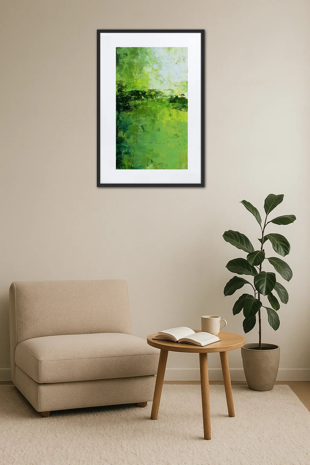 L'histoire derrière ce Tableau Abstrait Vert - Évasion et Renouveau en Teintes Naturelles