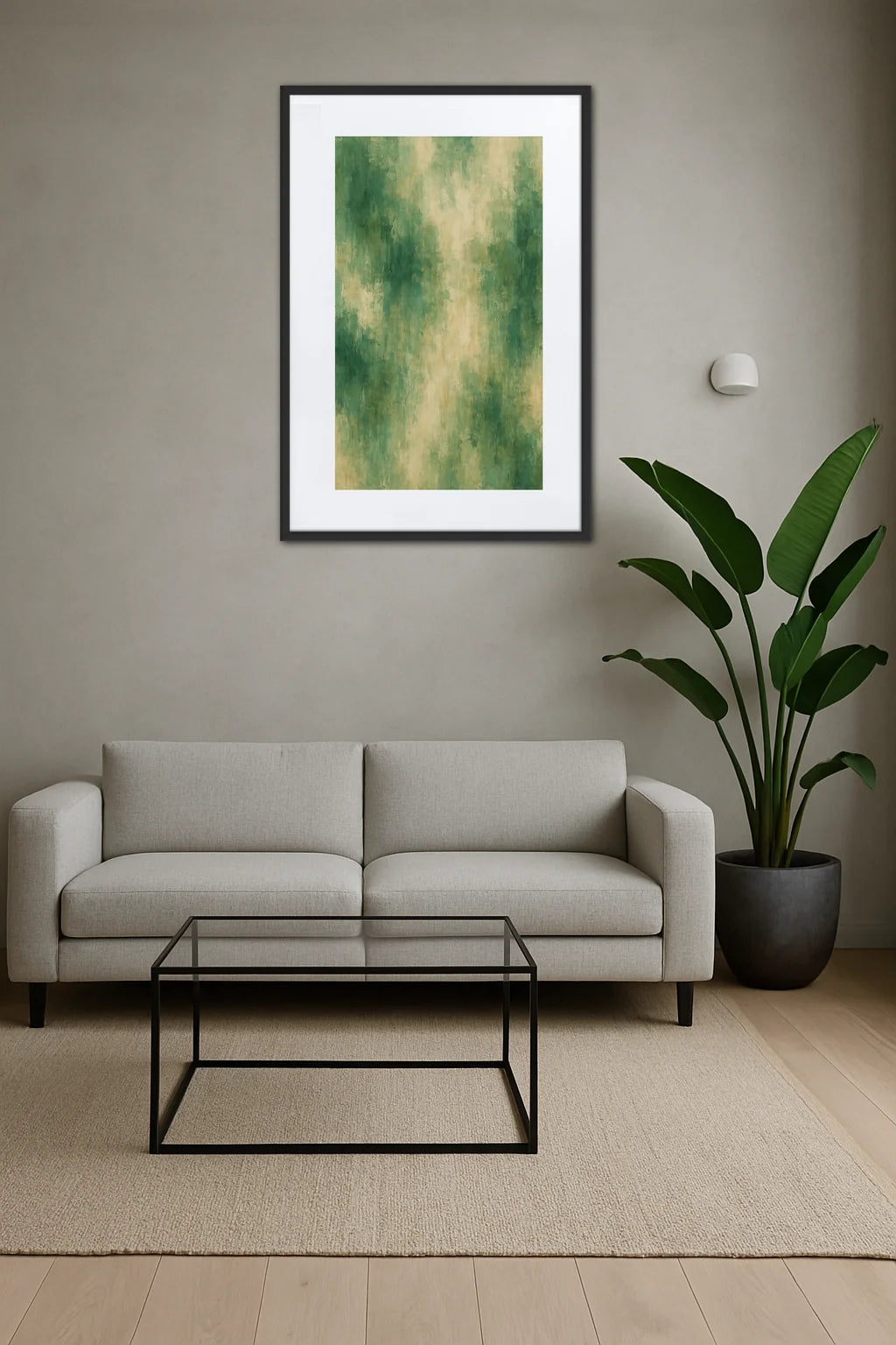 L'histoire derrière ce Tableau Abstrait Vert Beige - une symphonie organique de formes et de lumière