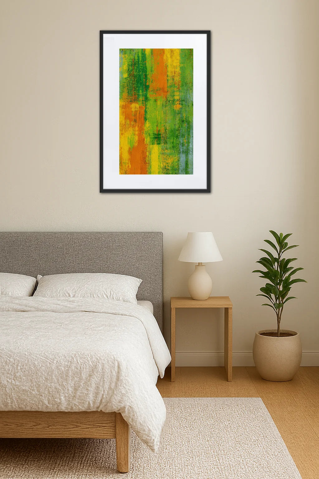 L'histoire derrière ce Tableau Abstrait Vert Orange - symphonie des nuances et pulsations organiques