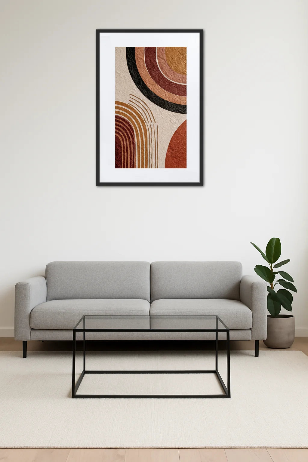 Cette œuvre s'inspire des paysages et des symboles d'Afrique, revisités par une approche contemporaine qui mêle authenticité et abstraction. Les arcs qui s'entrelacent évoquent les collines et les horizons lointains, tandis que les textures rappellent la terre battue, témoin des histoires anciennes. Chaque couleur choisie traduit une émotion profonde : le terracotta rappelle la passion et la force des peuples, le noir symbolise la puissance et la profondeur des racines culturelles, tandis que les nuances de beige offrent une respiration douce et apaisante. Ce tableau moderne se présente comme un pont entre le passé et le présent, entre les savoir-faire traditionnels et les expressions artistiques actuelles. Il exprime une quête d’équilibre entre la nature, l’homme et la mémoire collective. L’œuvre invite à un voyage intérieur, une immersion dans une Afrique réinventée, où le modernisme dialogue avec l’essence même de cette culture riche et diverse. Plus qu’un simple décor, elle porte en elle une énergie vibrante qui invite à la réflexion et à l’émerveillement, offrant une nouvelle lecture des symboles africains à travers un prisme contemporain.
