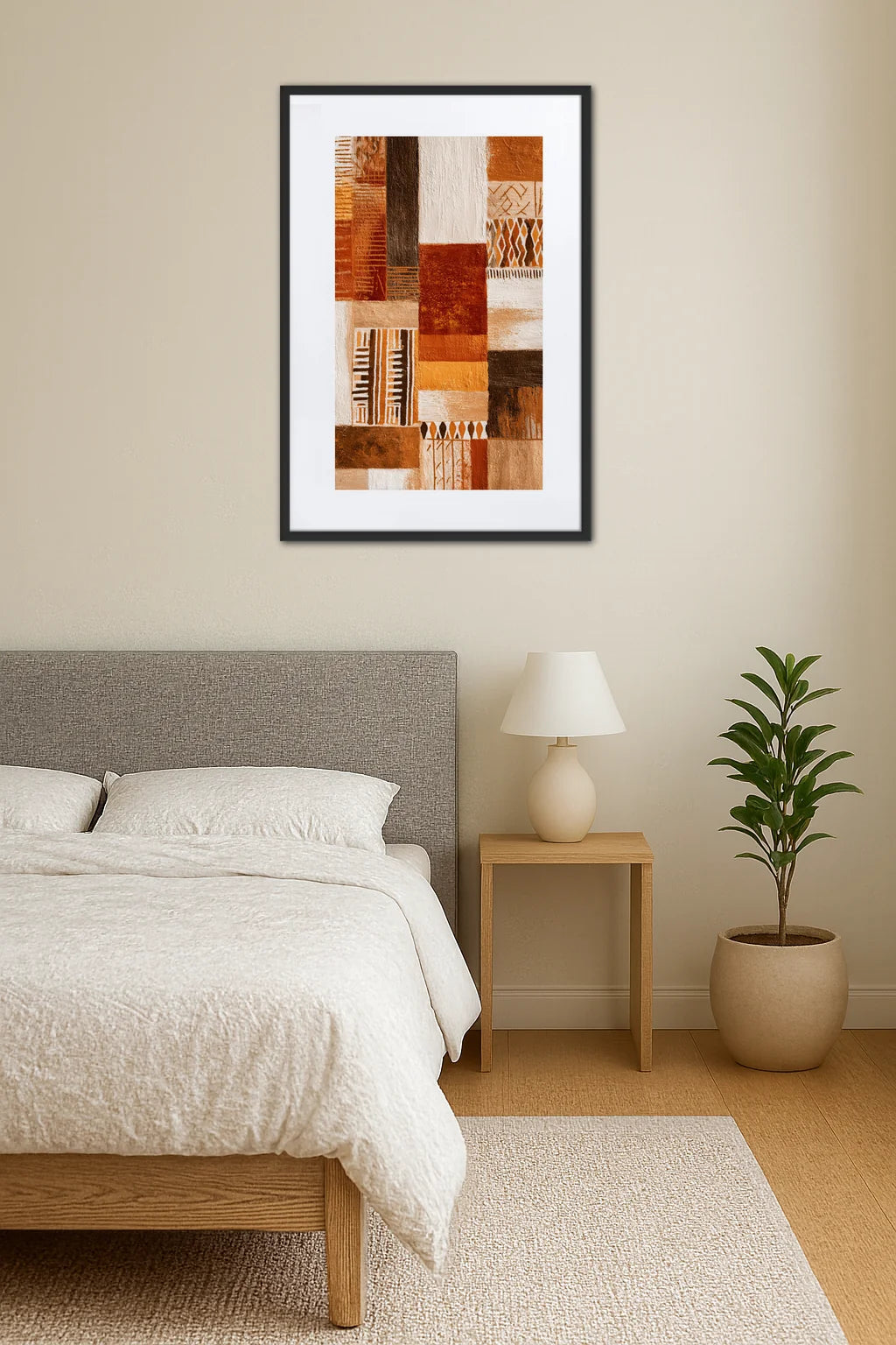 - Richesse des contrastes : Le jeu des teintes chaudes et profondes sur fond clair offre une dynamique subtile qui capte la lumière avec élégance. Cette intensité chromatique nourrit une émotion chaleureuse, évoquant le foyer et les liens humains, essentiels à toute vie.