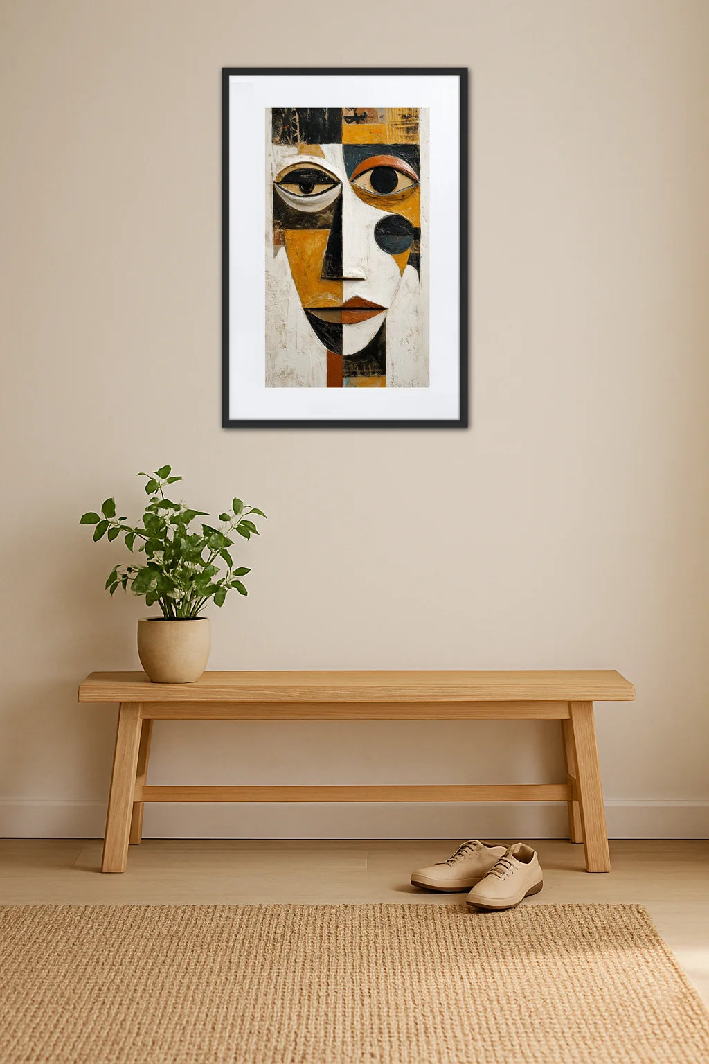 - Une présence forte et singulière : Le regard pénétrant du visage peint crée une connexion immédiate avec le spectateur. Ce contact visuel intense éveille une sensation de complicité, d’intimité et d’échange profond, transformant chaque regard en une expérience unique.