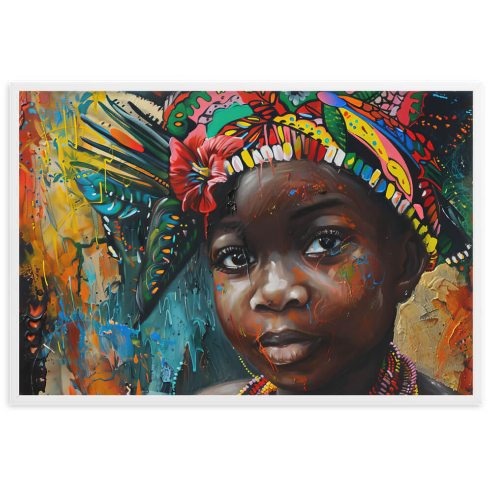 Découvrez les merveilles de l'Afrique avec notre Tableau Africain Enfant ! Cette oeuvre met en valeur la riche culture du continent en illustrant un bambin avec une coiffe traditionnelle.