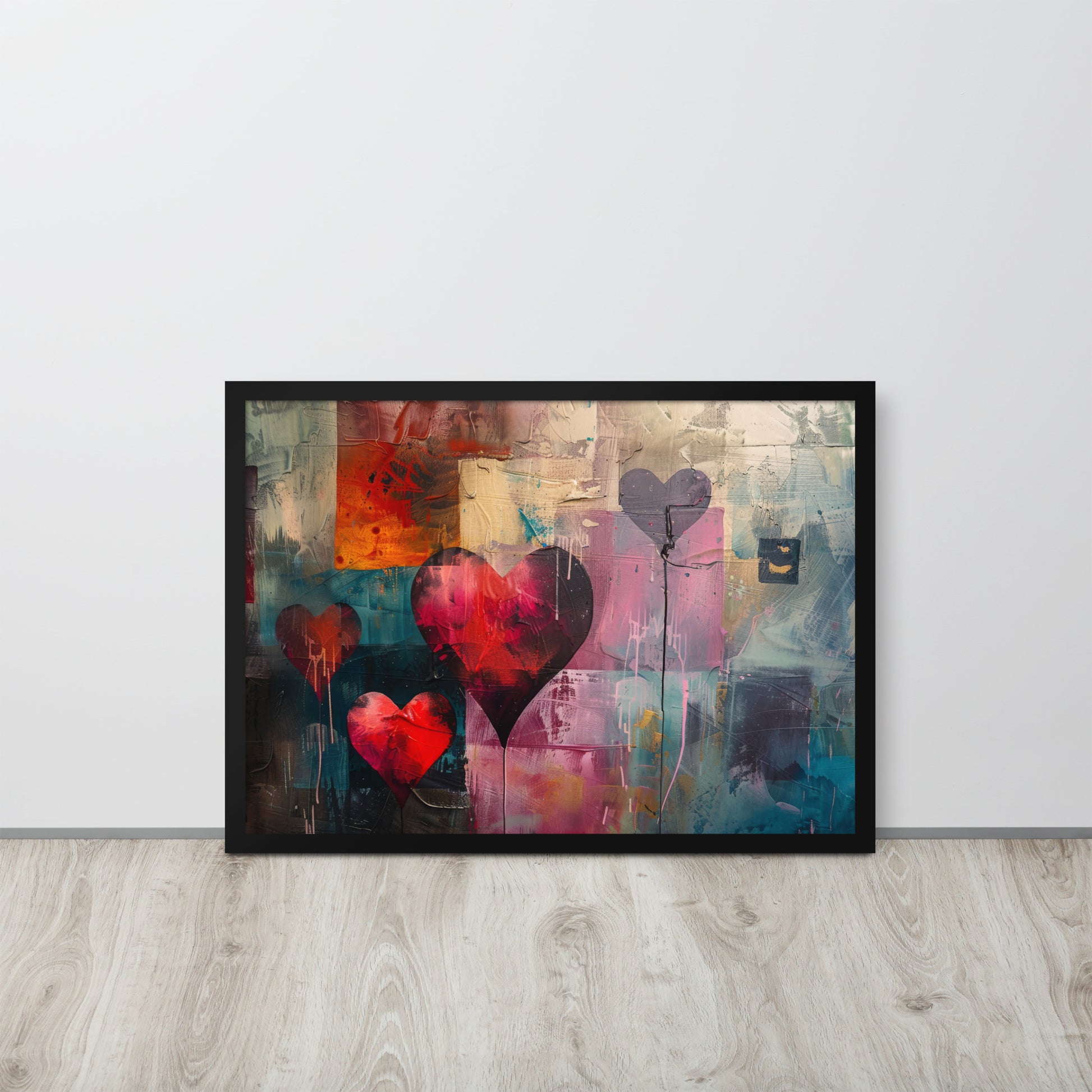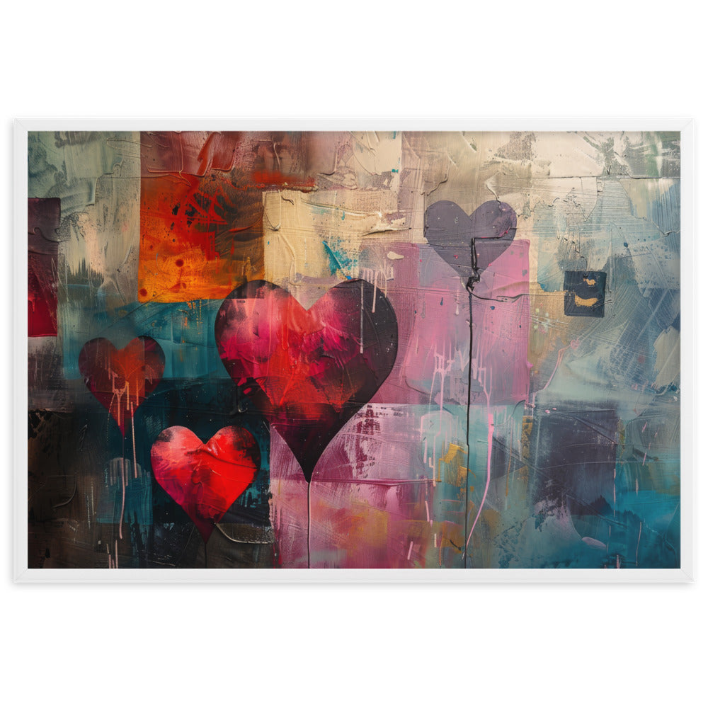 Exprimez la diversité de l'amour avec ce tableau artistique, mêlant une mosaïque de couleurs et des cœurs. Une œuvre qui célèbre la passion et la tendresse dans une explosion de créativité pour une décoration vibrante et pleine de vie.