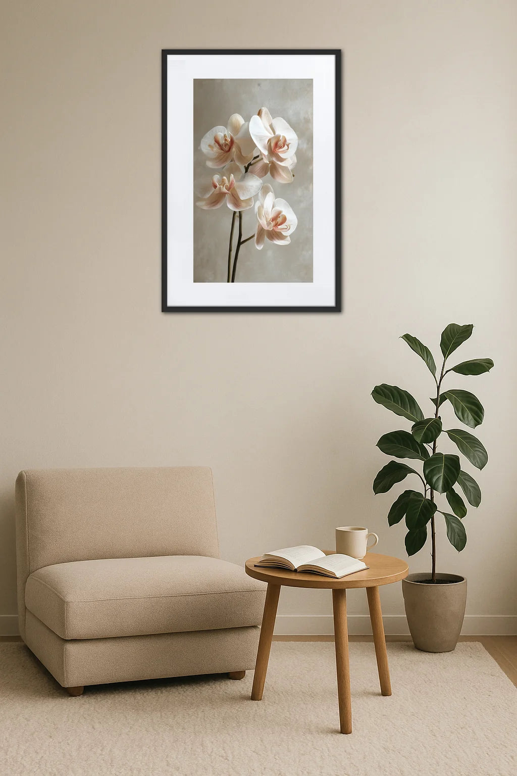 Ce tableau n’attend que votre regard pour révéler toute son émotion, instaurant un dialogue silencieux entre votre espace et la délicatesse de l’orchidée, complice de vos instants précieux.