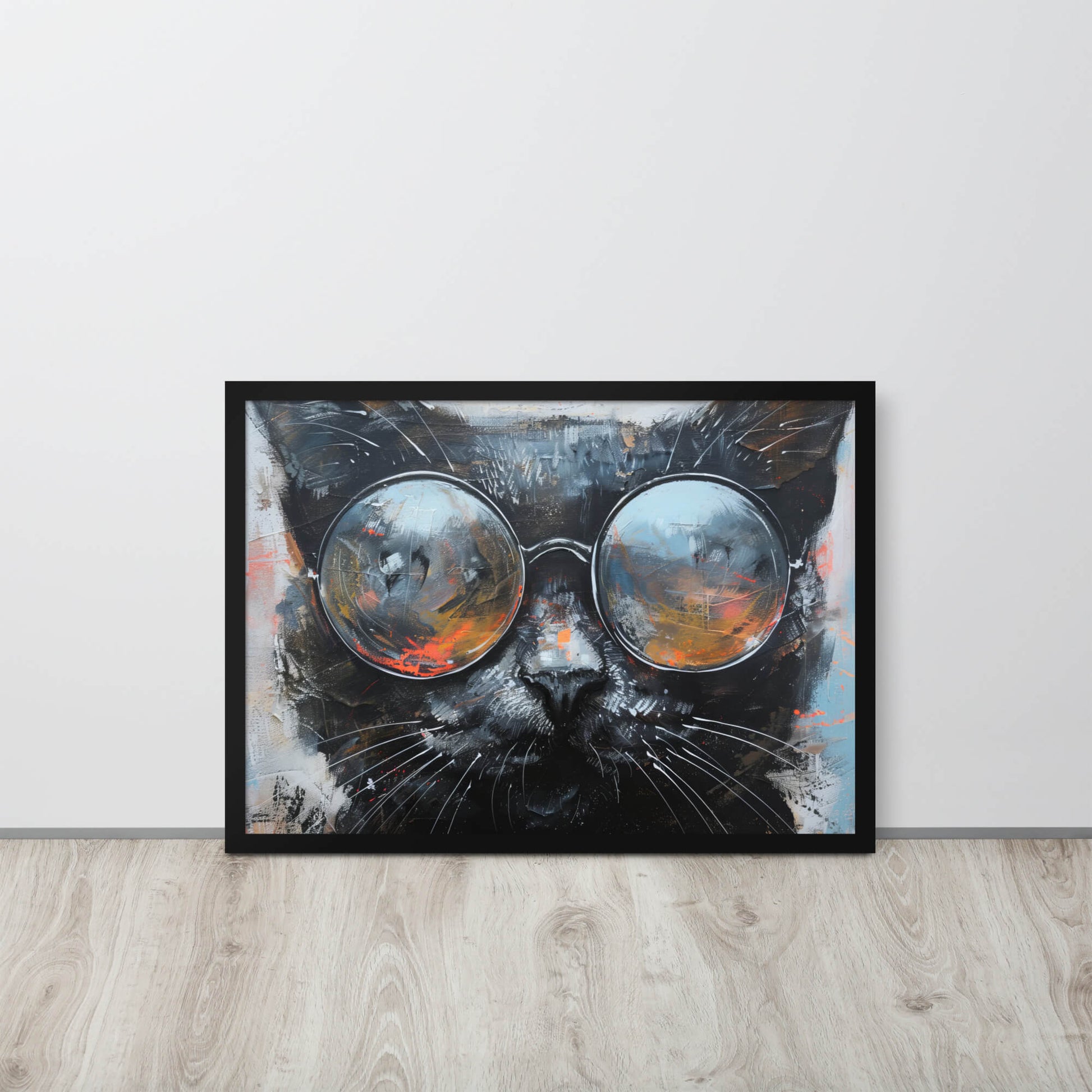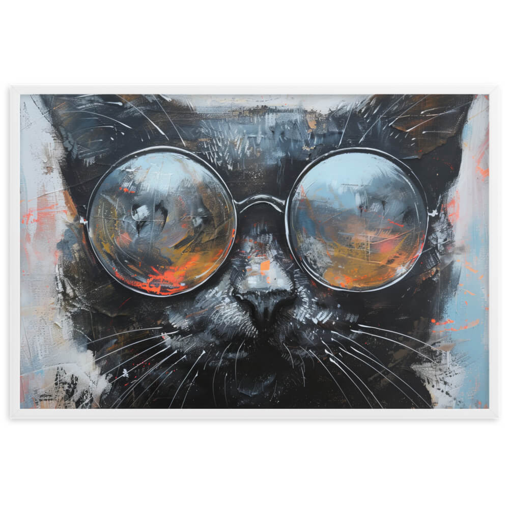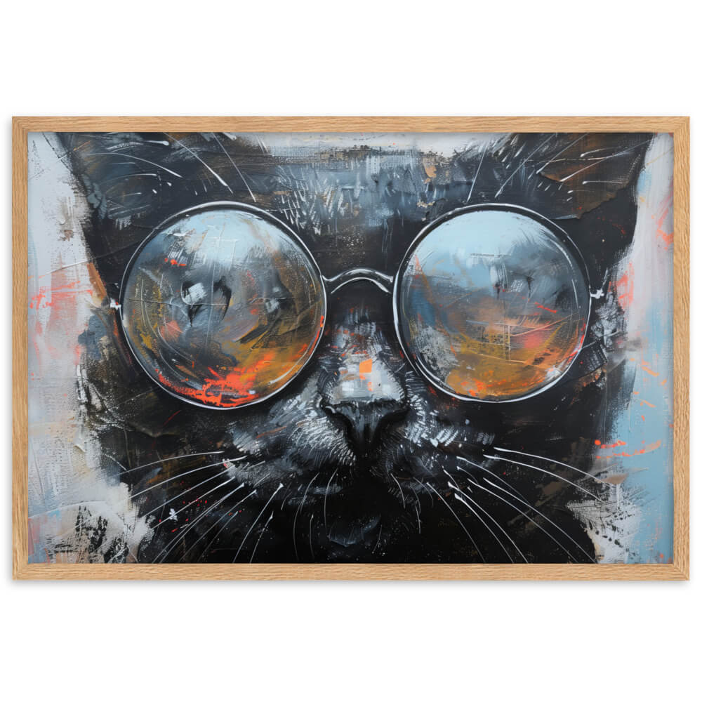 Ce tableau met en vedette un adorable chat avec des lunettes, apportant une touche d'humour et de fantaisie à votre décoration intérieure.