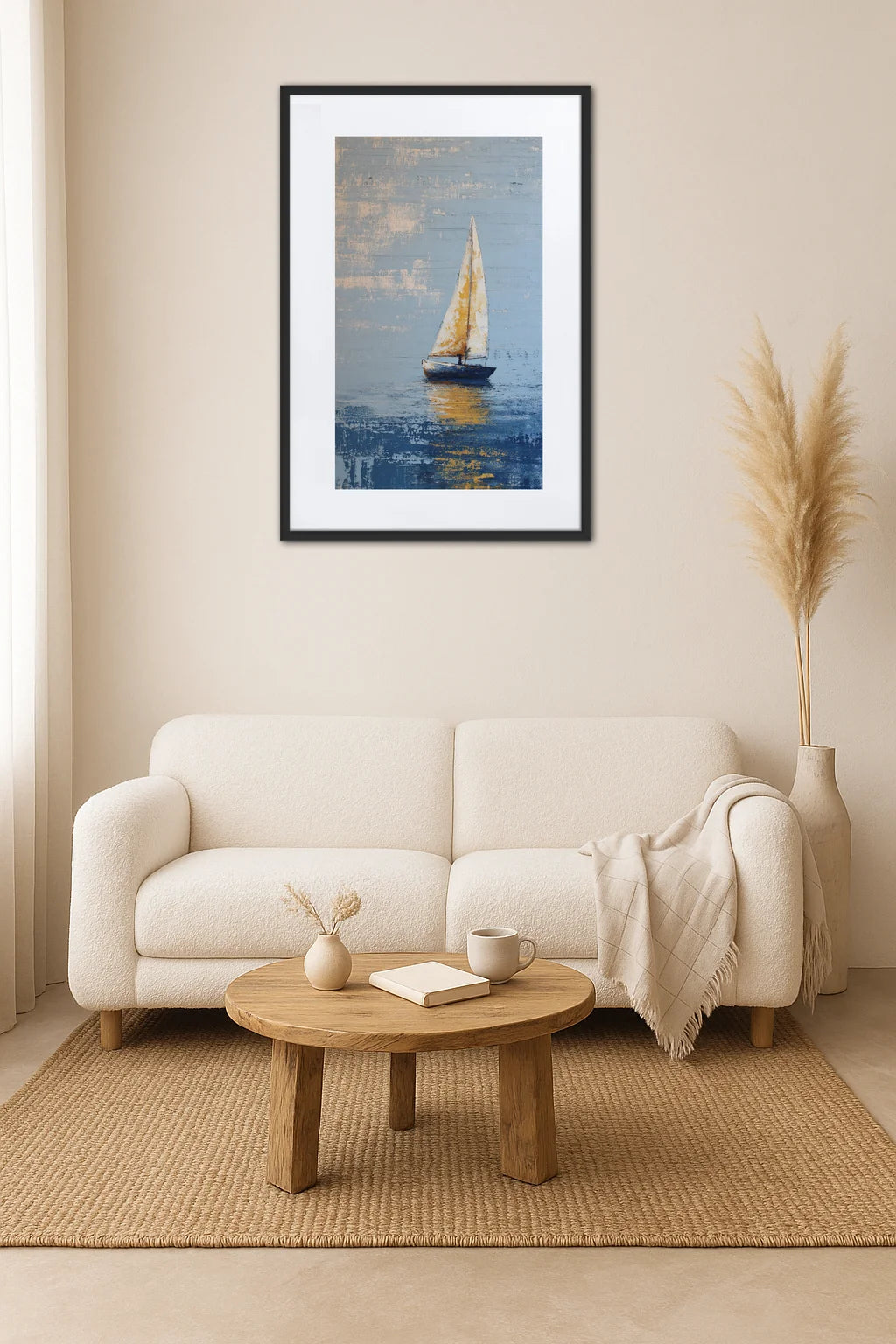 - Équilibre des formes : La silhouette élancée du bateau s’impose avec grâce sur un fond aux textures riches, créant une harmonie visuelle qui capte l’attention. Cette pureté des lignes inspire un sentiment de paix et d’évasion, comme une invitation à larguer les amarres des pensées encombrantes.