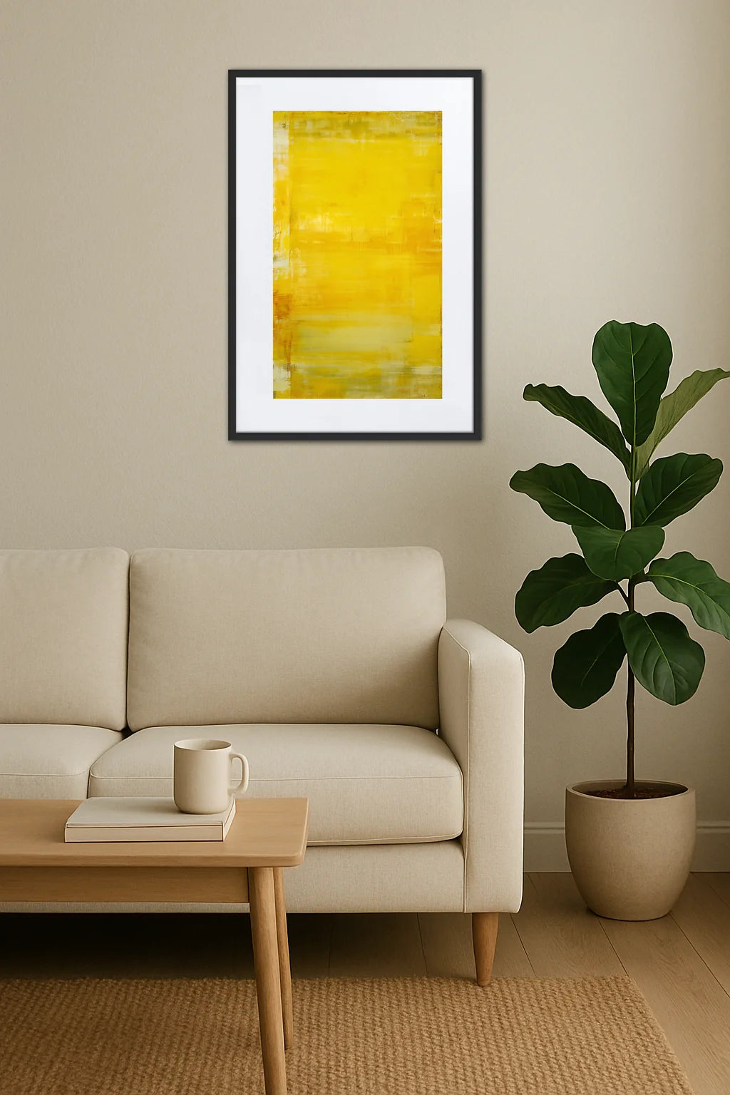 - Intensité lumineuse : La dominante jaune éclaire votre intérieur d’une énergie chaleureuse qui stimule les émotions positives. Ce rayonnement visuel apporte une sensation de bien-être, comme un rayon de soleil capturé sur toile, éveillant la joie et la sérénité.
