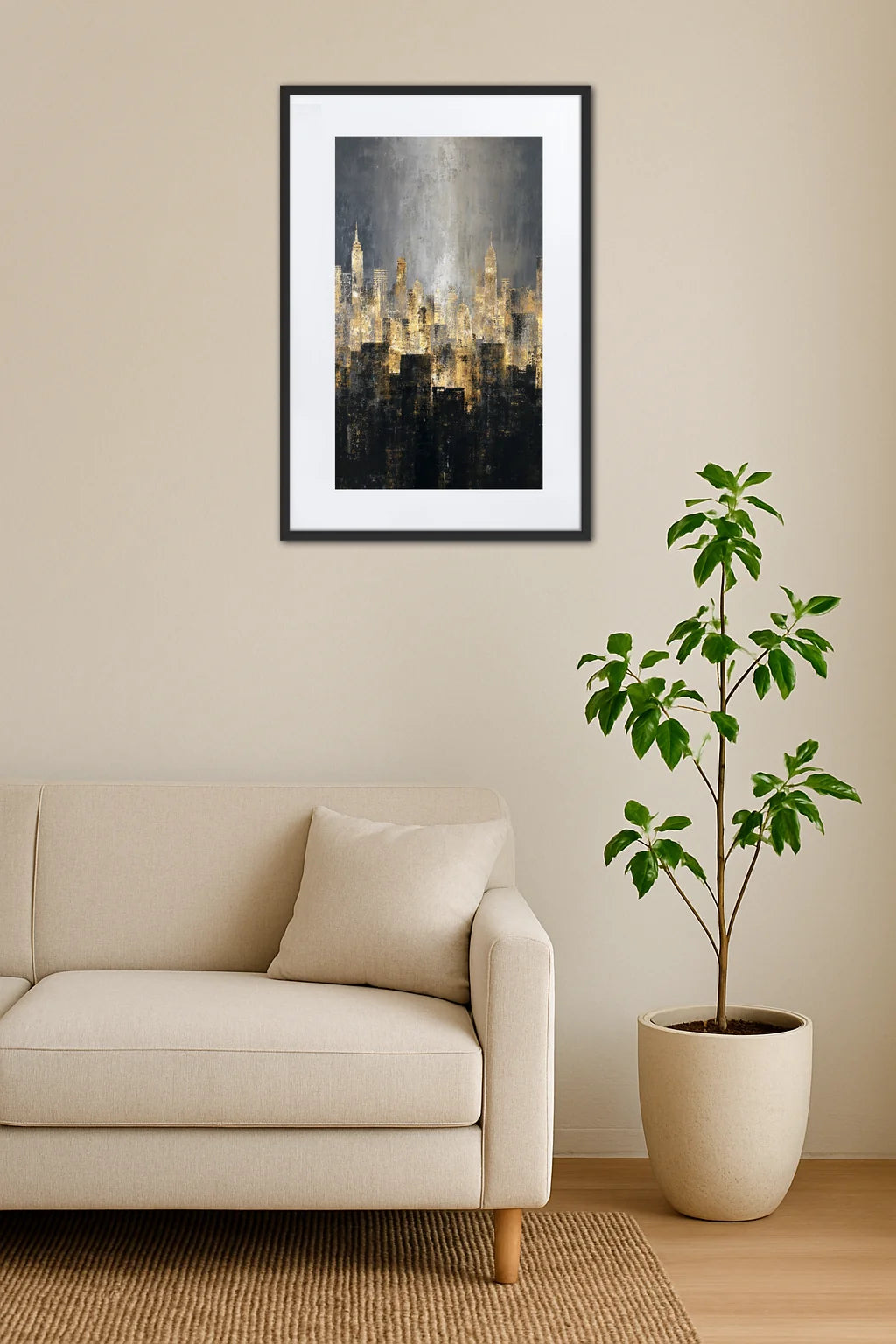 - Contrastes saisissants : Le jeu entre les zones sombres et les éclats dorés crée une profondeur captivante. Cette dynamique visuelle stimule l’imagination et éveille une émotion intense, comme une balade nocturne au cœur d’une cité pleine de mystères.