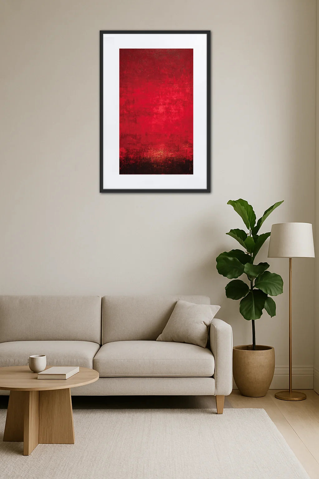 L'histoire derrière ce Tableau Contemporain Rouge - éclats de feu et profondeur vibrante