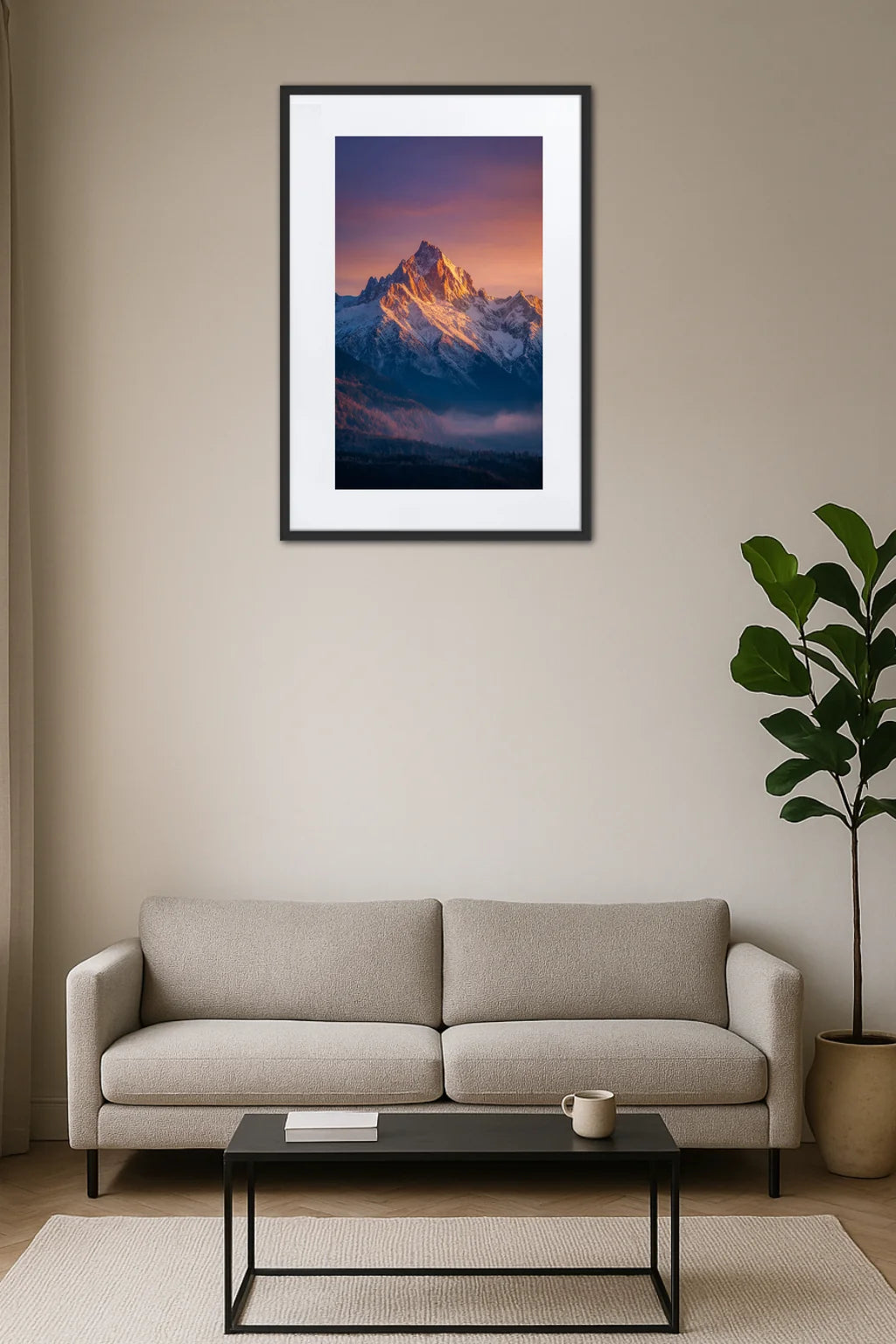 L'histoire derrière ce Tableau Coucher De Soleil Montagne - Éveil des cimes et harmonie des lueurs
