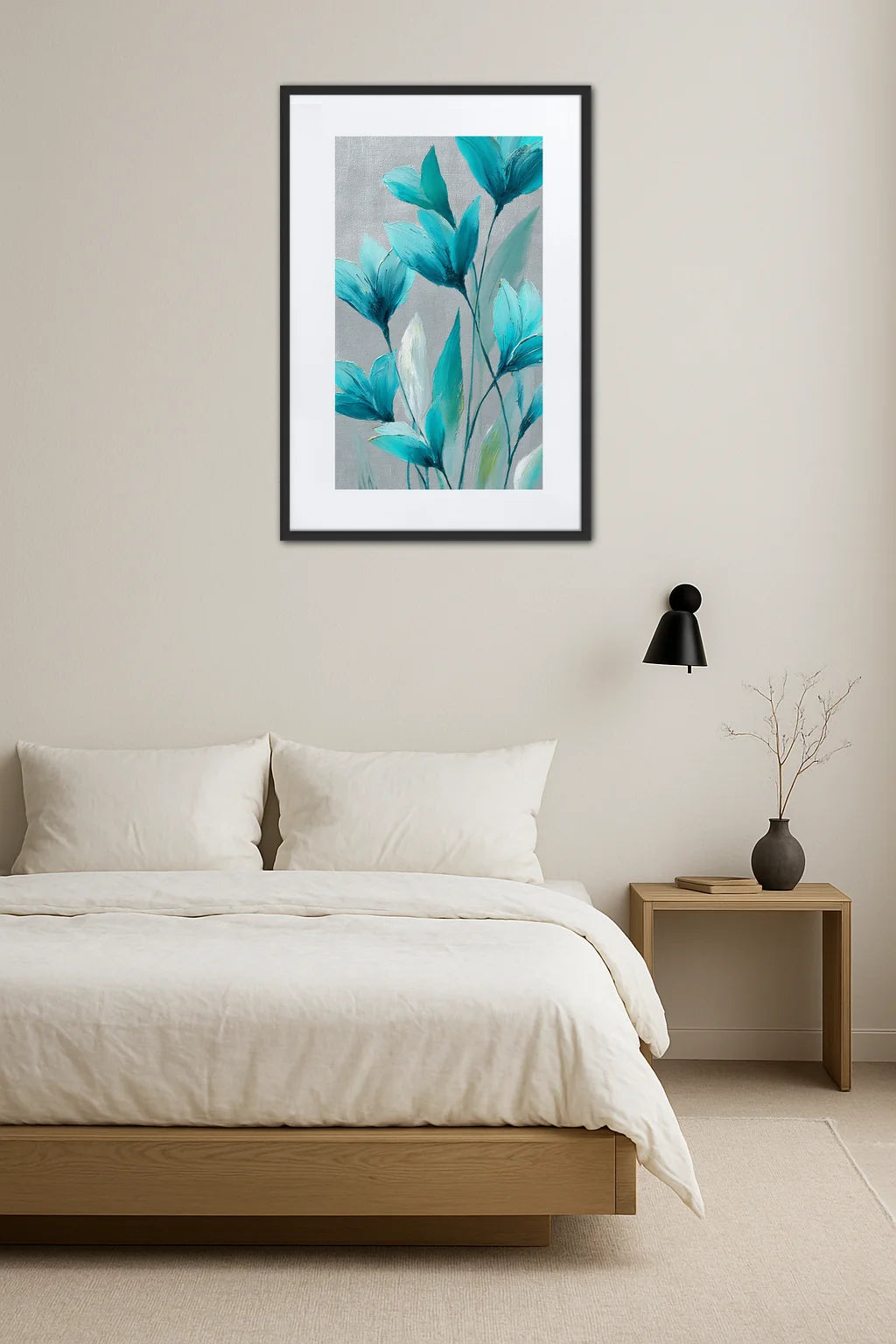Ce Tableau Fleur Bleu Canard s'inscrit dans une tradition où la nature s’exprime avec une intensité renouvelée, empruntant aux codes classiques une liberté d’interprétation contemporaine. L’artiste, en jouant avec la légèreté des fleurs et la profondeur d’un bleu canard vibrant, évoque une atmosphère à la fois apaisante et pleine de vie, comme une rencontre entre l’âme et le monde extérieur. Les fleurs, sculptées par des traits affirmés et des nuances subtiles, semblent suspendues dans un espace intemporel, offrant un dialogue entre la douceur et l’énergie. Cette œuvre ne se contente pas de représenter un simple bouquet, elle transcende la nature pour toucher à l’essence même de la beauté fugace et éternelle. Par son audace dans le choix des formes et par la délicatesse de ses détails, elle invite à une réflexion sur la fragilité et la force qui cohabitent en chacun. Le bleu canard, couleur profonde et mystérieuse, agit ici comme une fenêtre ouverte vers des émotions riches et contrastées, enveloppant le spectateur dans une atmosphère sereine et inspirante. C’est un hommage à la nature réinventée, où chaque élément trouve sa place dans un équilibre parfait entre mouvement et calme, entre lumière et profondeur.