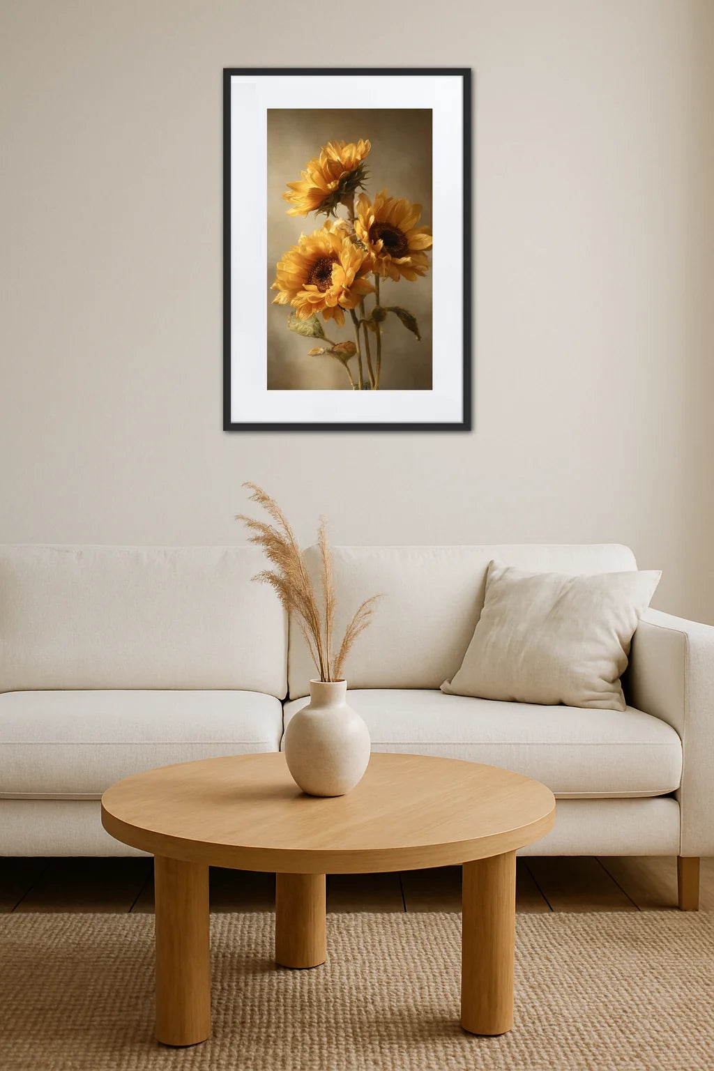 Ce tableau Fleur De Tournesol capture bien plus qu’une simple image florale, il incarne une célébration de la lumière et de la vie. Le tournesol, symbole universel de force et d’optimisme, est ici sublimé dans une composition où les formes se détachent avec élégance sur un fond enveloppant. L’artiste a su mêler la puissance visuelle des fleurs à une atmosphère presque onirique, où chaque pétale semble raconter une histoire de résilience et de beauté. Le choix des nuances dorées réchauffe le regard et invite à un dialogue silencieux entre l’œuvre et son spectateur. Cette toile évoque également une certaine nostalgie des étés passés, des champs baignés de soleil où la nature respire à pleins poumons. Plus qu’un simple décor, elle devient un hymne à la lumière intérieure, à la capacité de chaque être à se tourner vers ce qui éclaire et inspire. Une œuvre qui, par sa présence, transforme un espace en un lieu d’émotions partagées, d’élégance et d’harmonie, à la croisée des chemins entre tradition et modernité.