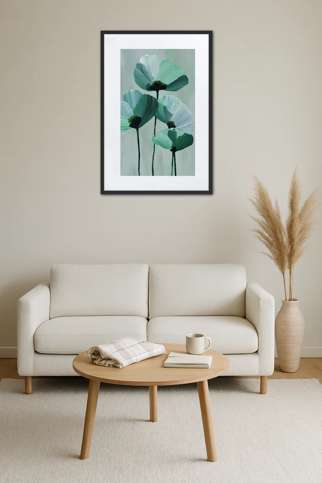 Ce Tableau Fleur Vert incarne une rencontre entre la délicatesse du vivant et la puissance évocatrice de la couleur. Au premier regard, les nuances de vert déployées sur chaque pétale racontent une histoire de renouveau et de calme profond, comme une promenade au cœur d'une forêt au petit matin. La composition joue avec les formes simples et élancées des fleurs, évoquant une iconographie moderne où la nature se fait à la fois muse et message. Le contraste subtil entre les différentes teintes de vert invite à une méditation sur les variations infinies que peut offrir un même élément, rappelant la richesse de la vie et son impermanence. Cette œuvre dialogue avec les traditions picturales tout en les revisitant, offrant un pont entre l’art classique et la sensibilité contemporaine. Elle incarne aussi la poésie des instants suspendus, où l’on peut percevoir l’intensité d’un souffle, la douceur d’un geste naturel. La verticalité des tiges et la légèreté des pétales suggèrent un mouvement ascendant, une invitation à l’élévation de l’âme. Au-delà de la simple représentation, ce tableau devient un espace de respiration, une ode à la nature revisitée avec élégance et modernité.