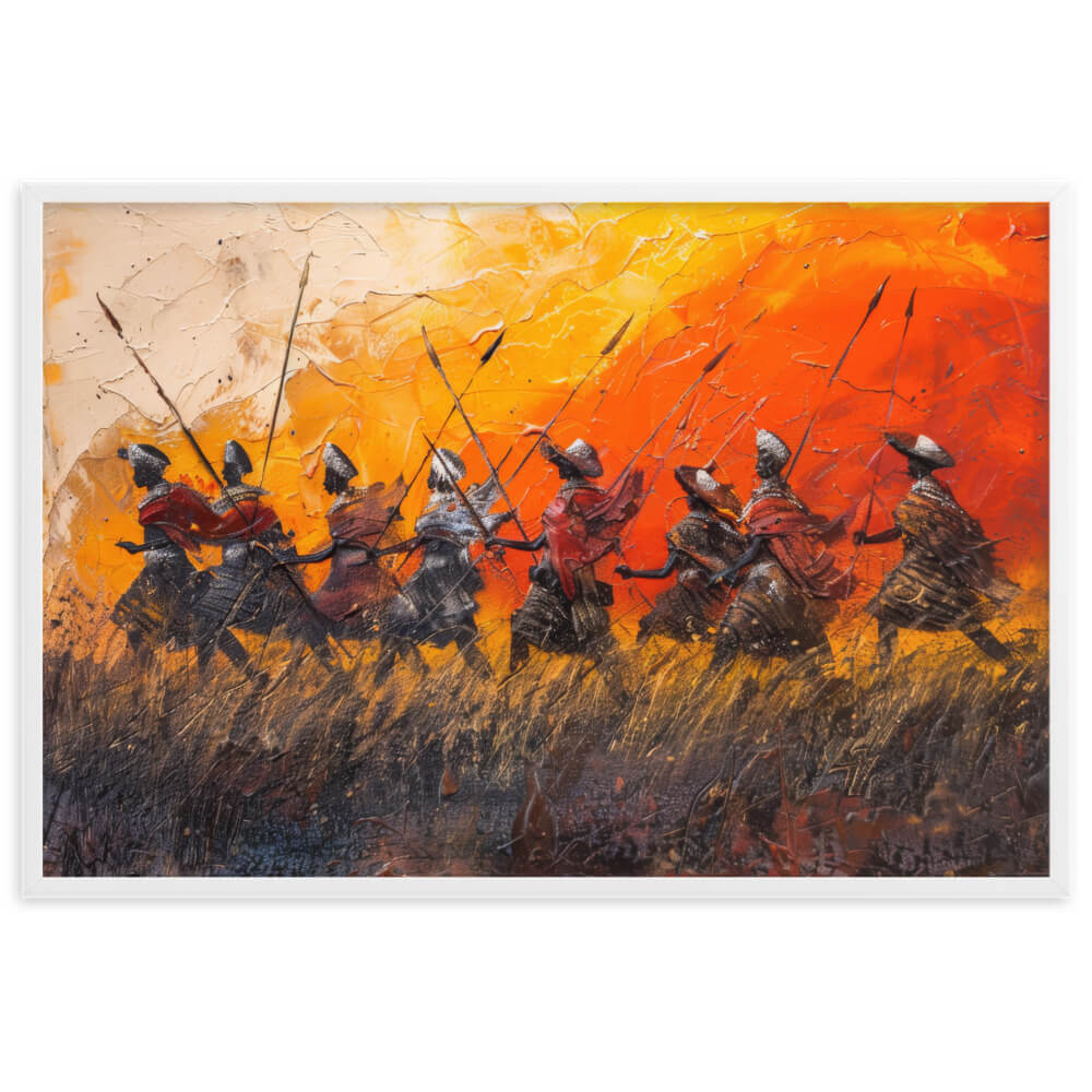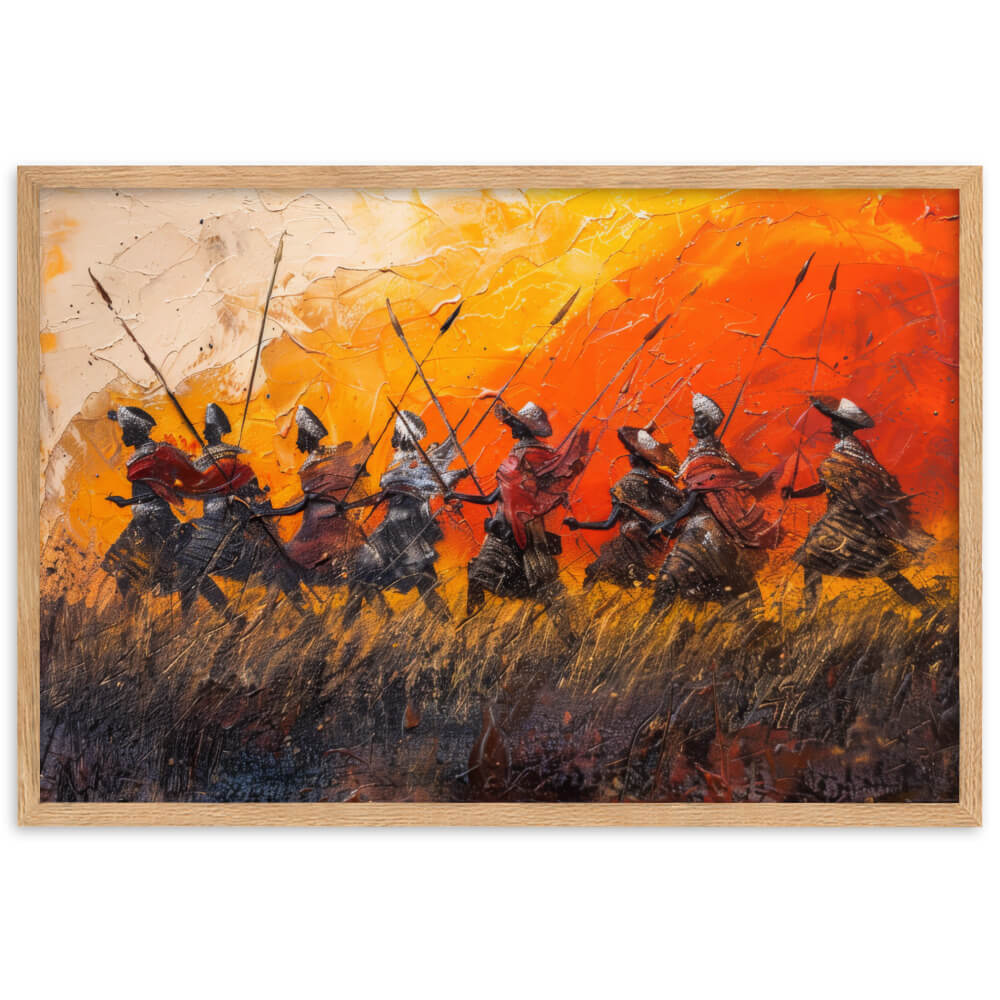 Ce tableau Guerrier Africain est une pièce d'art qui évoque la force et la bravoure des guerriers africains. Cette œuvre vous transportera sur le champ de bataille.