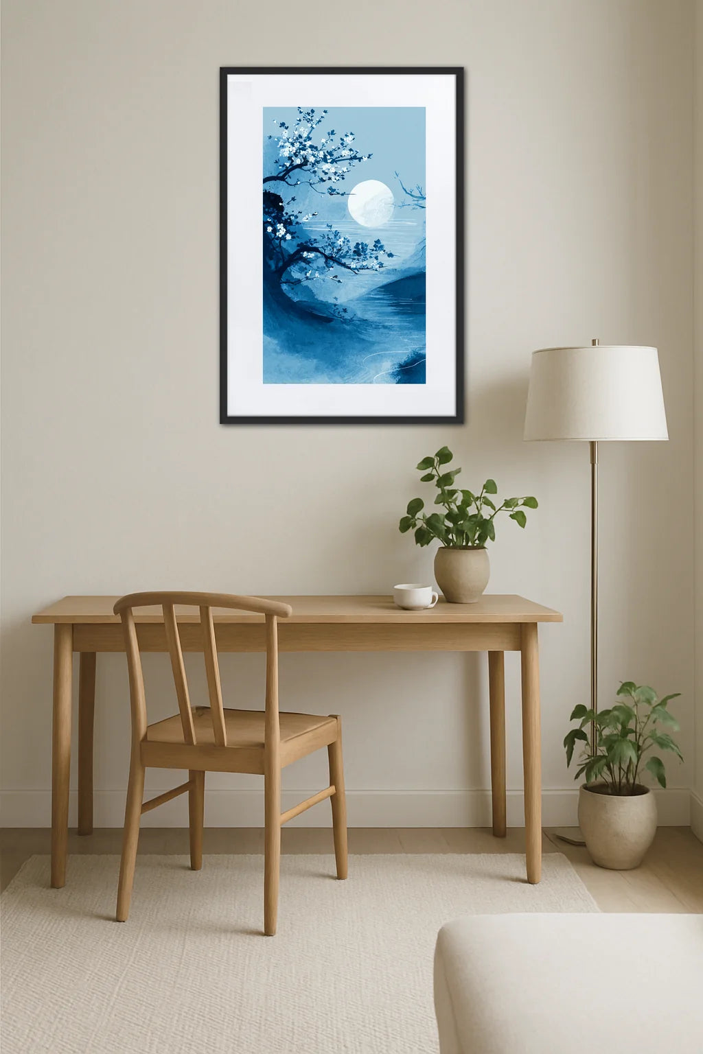L'histoire derrière ce Tableau Japonais Bleu - Sérénité et mystère d’un paysage lunaire