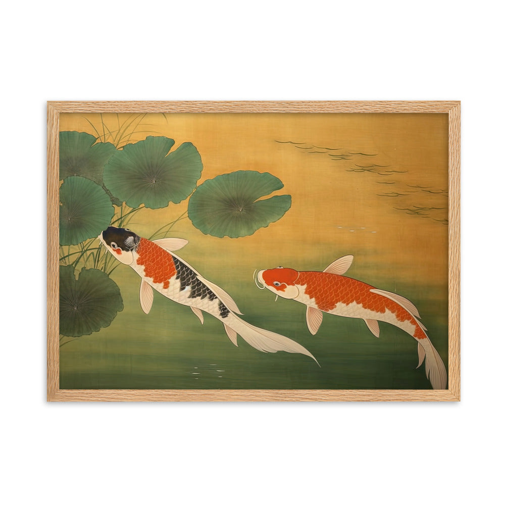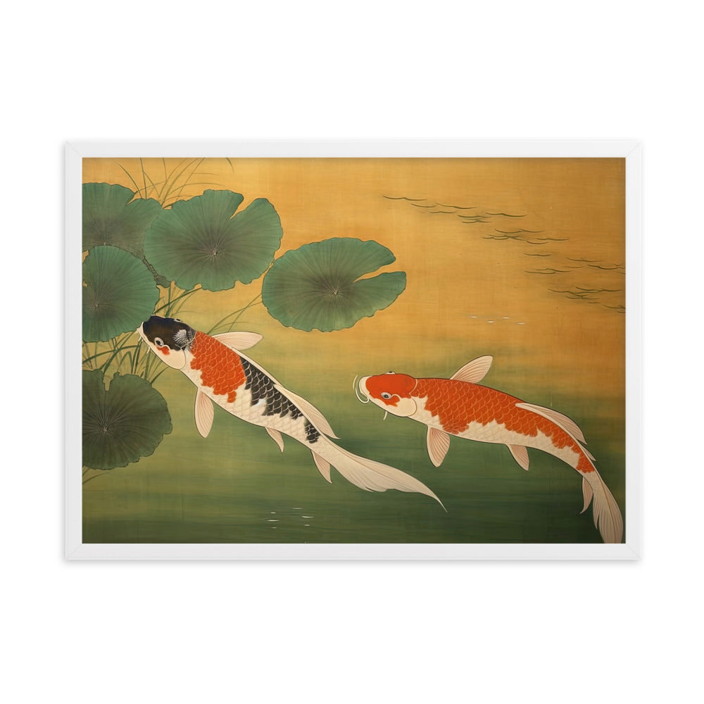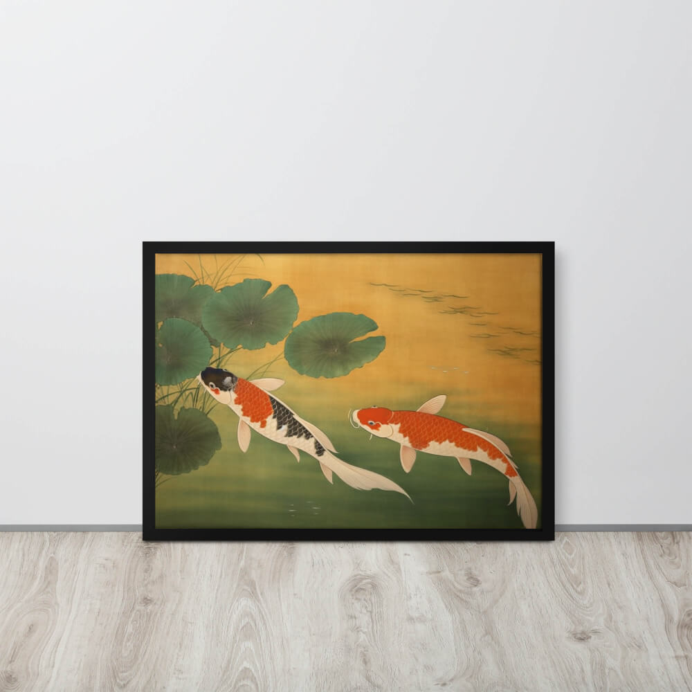 Voyagez dans les profondeurs mystérieuses de l'océan avec ce tableau japonais mettant en scène deux magnifiques carpes. Cette oeuvre captivante vous transporte dans le monde sous-marin avec deux koi aux couleurs éclatantes et aux détails fins.