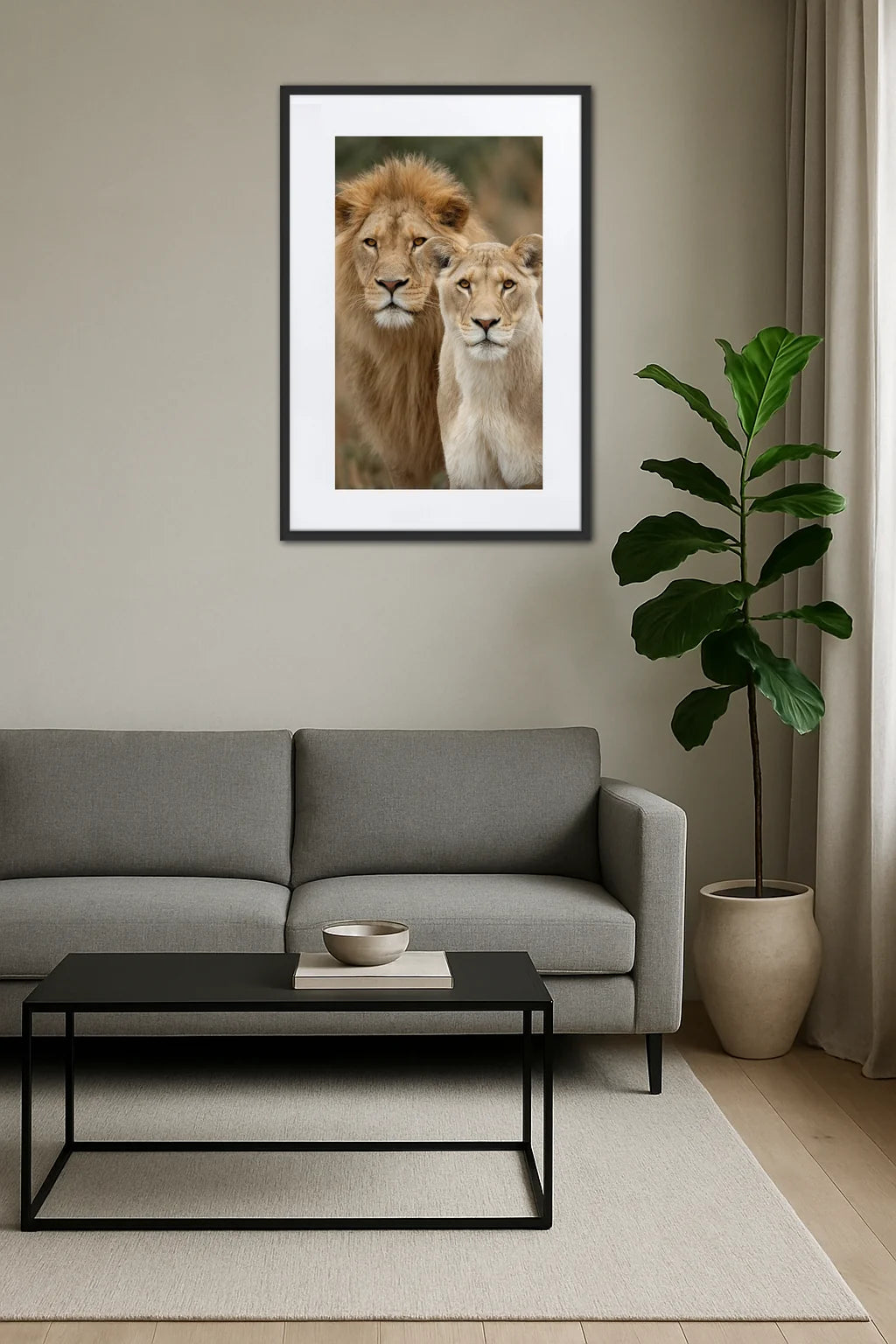 L'histoire derrière ce Tableau Lion Lionne - union majestueuse et regard intense
