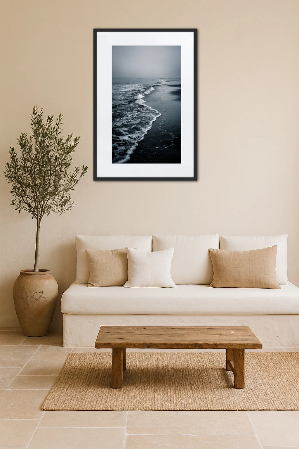 - Élégance visuelle : La composition épurée et les lignes délicates créent un équilibre parfait qui apaise et invite à la contemplation. Cette harmonie subtile éveille une sensation de calme intérieur, comme une respiration profonde face à l’immensité marine.