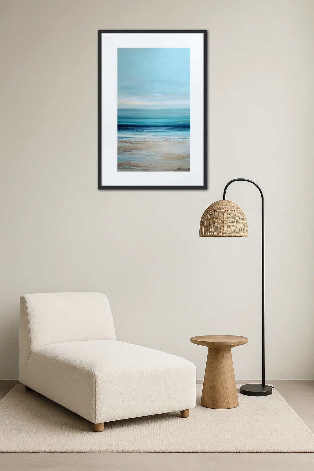 - Profondeur immersive : L’effet de dégradé et la texture délicate créent une sensation d’infini, comme si l’horizon s’étendait au-delà du cadre. Cette perspective ouvre un espace mental, propice à la rêverie et à l’évasion intérieure.