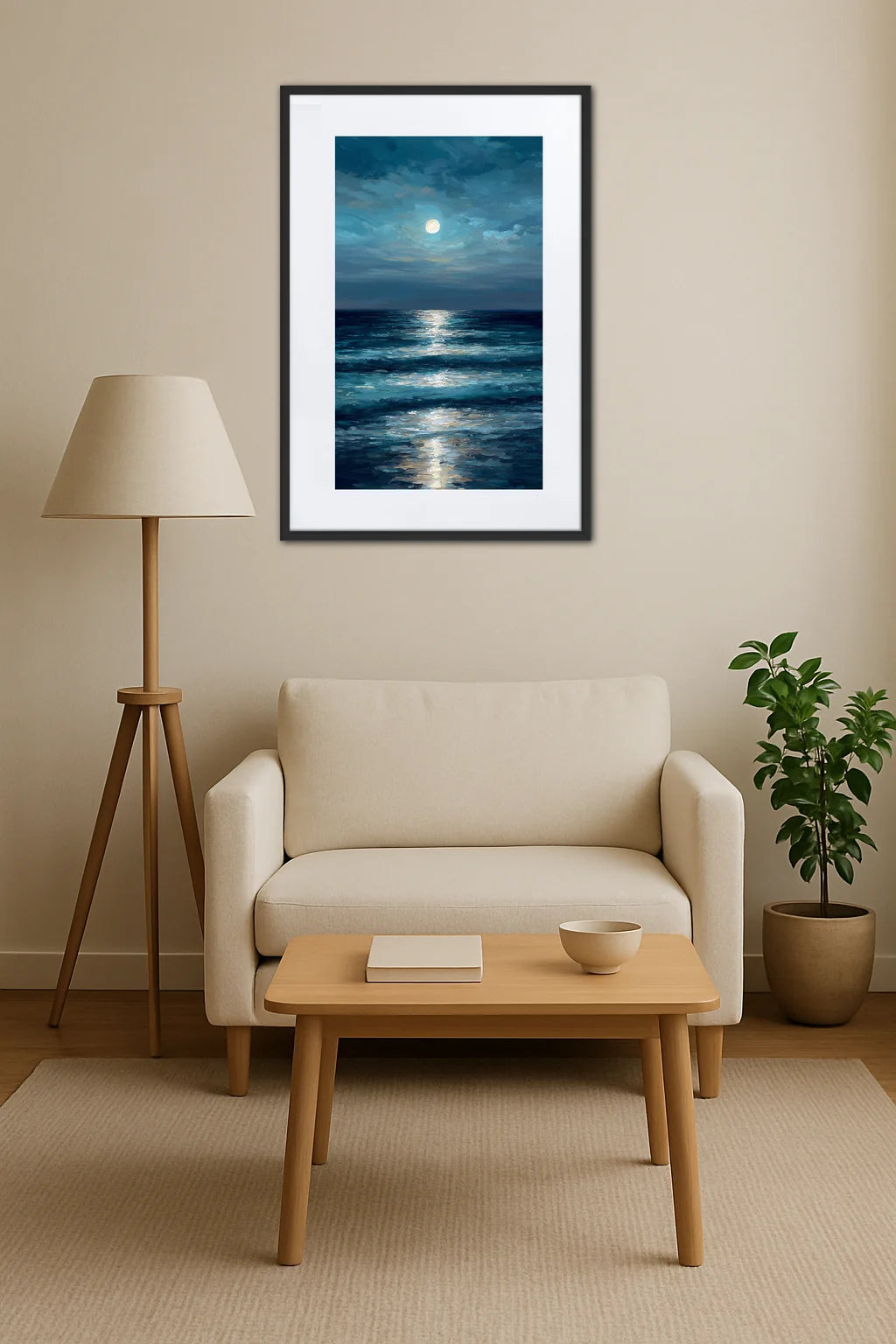 Ce tableau n’est pas seulement un décor, il est un échange sensible entre l’œuvre et vous, une rencontre où chaque regard fait résonner la poésie profonde de l’océan nocturne.