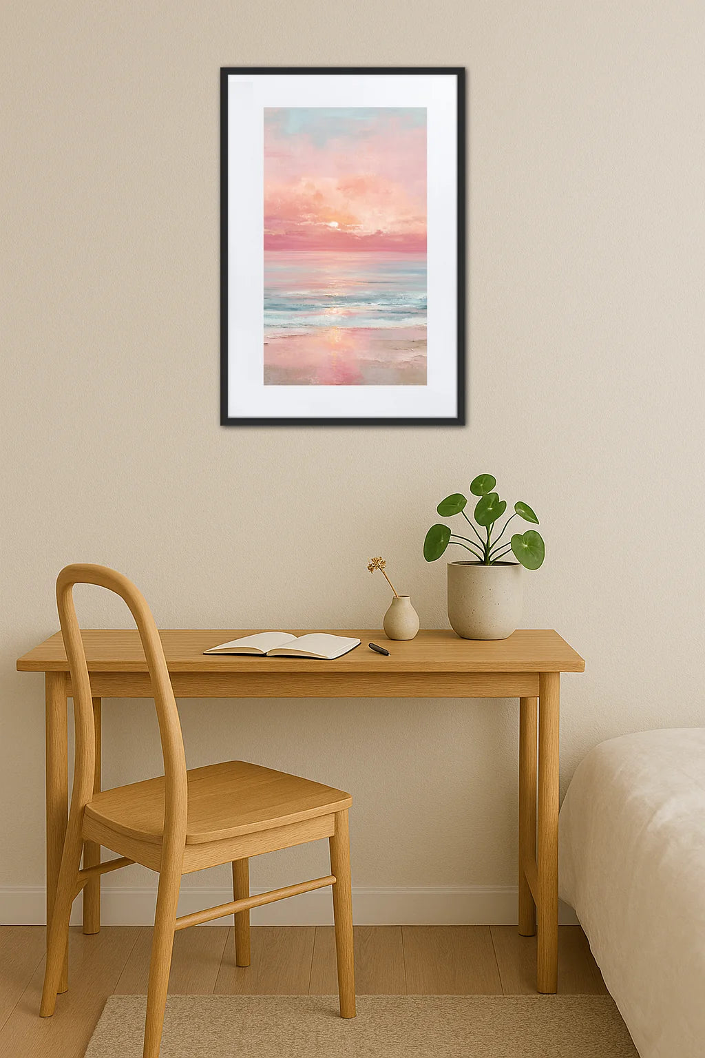 L'histoire derrière ce Tableau Mer Rose - poésie marine et lumière évanescente