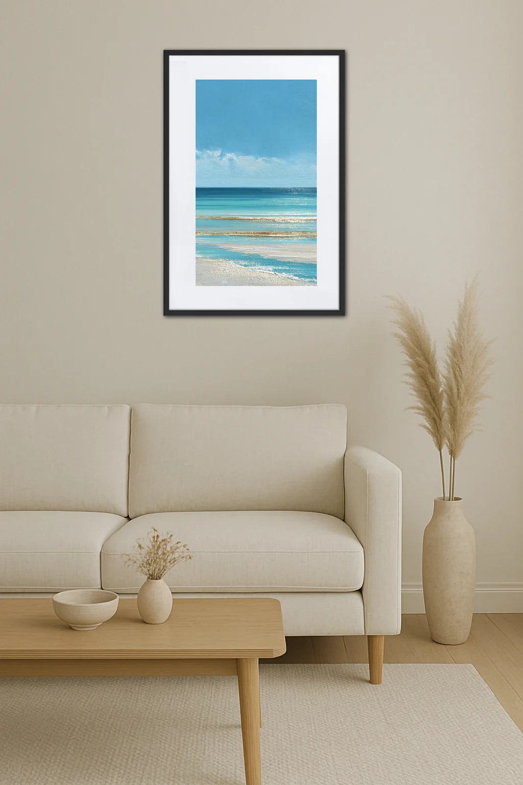 - Élégance naturelle : La composition minimaliste et raffinée met en lumière la beauté simple de la mer, offrant une pièce qui valorise l’espace sans le surcharger. Ce choix esthétique crée un sentiment d’équilibre et de sérénité, renforçant le lien intime avec la nature.