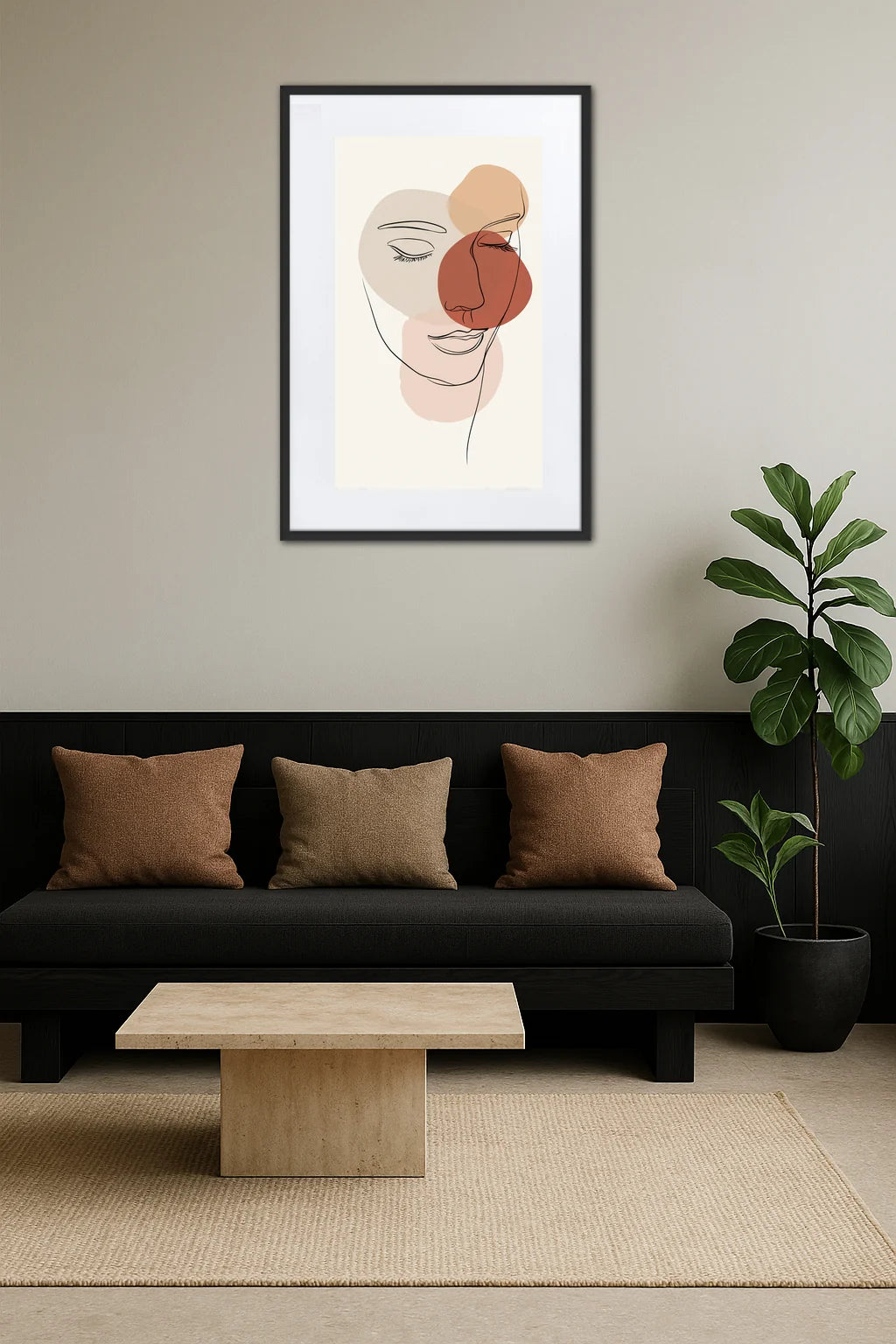 - Une palette chaleureuse et enveloppante : Les nuances de terre et de beige apportent une douceur tactile à l’image, évoquant la chaleur humaine. Ces couleurs stimulent une émotion douce et réconfortante, comme un lien intime entre l’œuvre et le spectateur.