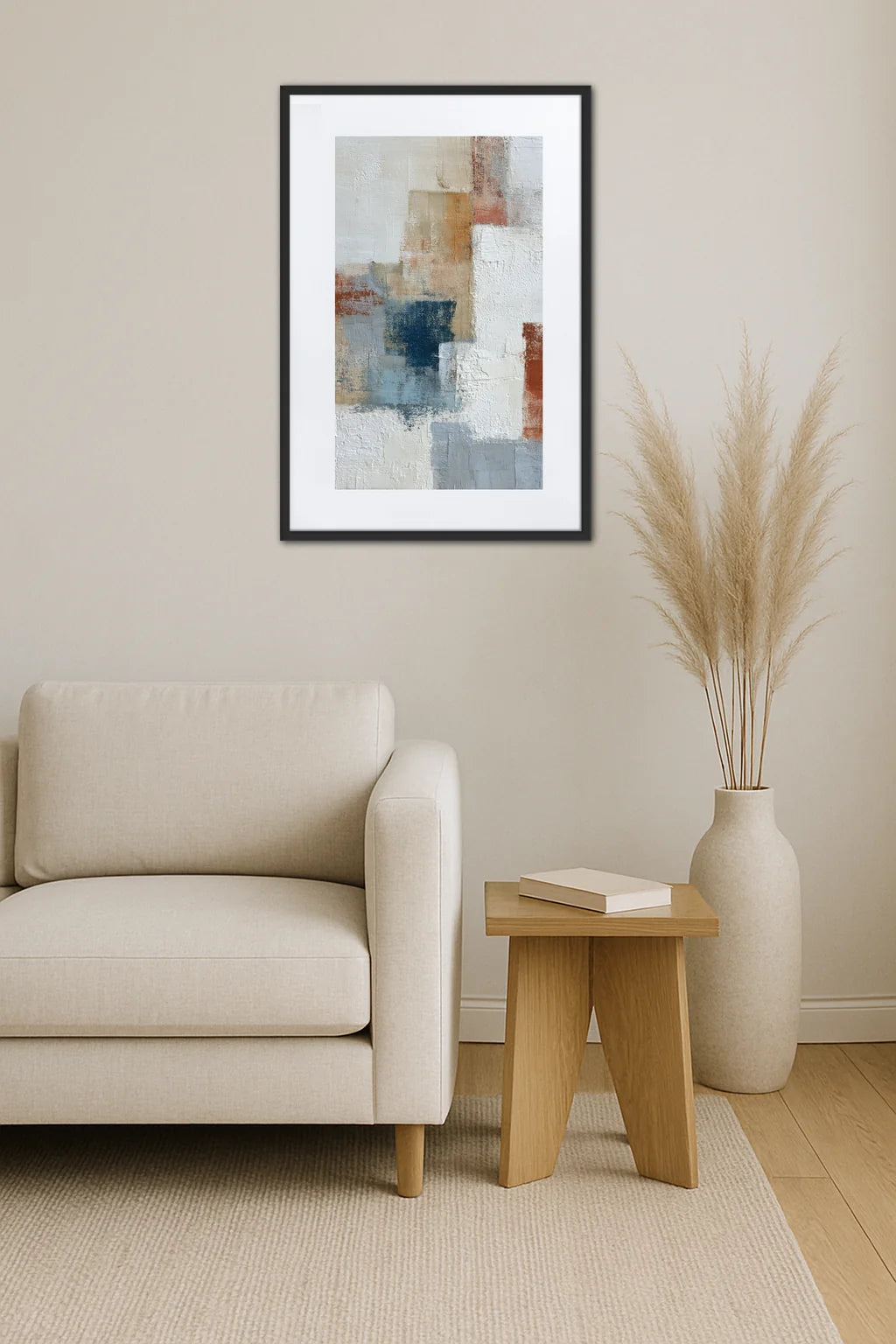 - Palette chaleureuse : Les nuances de beige, bleu et rouille s’entrelacent pour composer une ambiance douce et enveloppante. Elles éveillent une sensation de confort et de bien-être, comme un refuge chaleureux dans un monde parfois agité.
