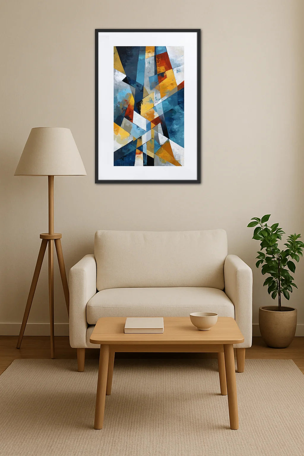 L'histoire derrière ce Tableau Moderne Coloré - une symphonie d’éclats et de formes abstraites
