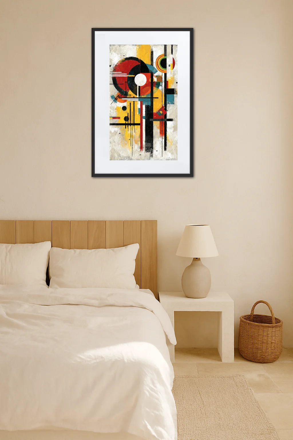 Ce tableau moderne Kandinsky est bien plus qu’une simple image : c’est une invitation à un dialogue silencieux où votre regard et l’œuvre se répondent avec intensité. Accueillez cette complicité et laissez-la enrichir votre quotidien.