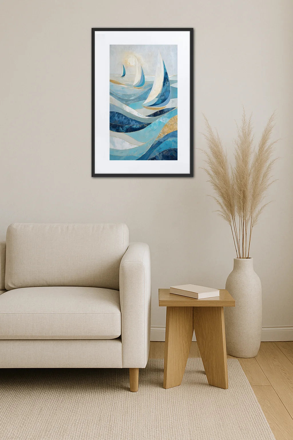 - Iconographie poétique et évocatrice : Les voiliers stylisés parlent d’aventures et de voyages, tout en restant ancrés dans une abstraction élégante. Ils suscitent une émotion douce, celle d’un désir de liberté et d’horizons lointains, portée par la beauté simple et raffinée de l’œuvre.